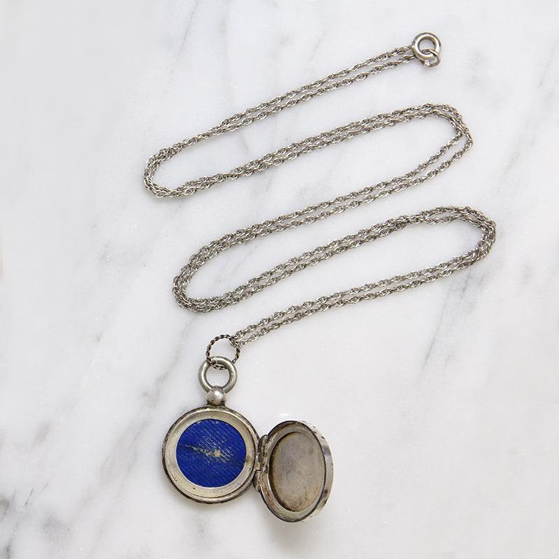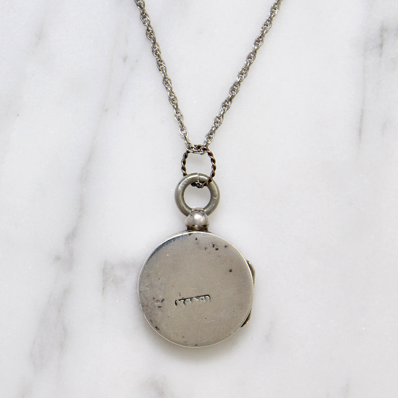 Details.....The chain is 24" long, and the locket measures .73" in diameter, 1.08" with bale. In Very Good Antique Condition. You should always expect some wear on vintage and antique pieces; we consider it part of the charm.