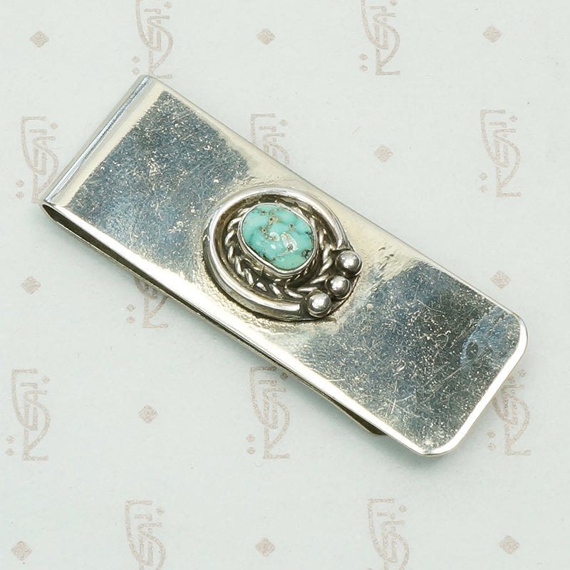 Nicely crafted Sterling silver money clip set with a lovely piece of Turquoise. Signed RGP and dating to the 1970's.