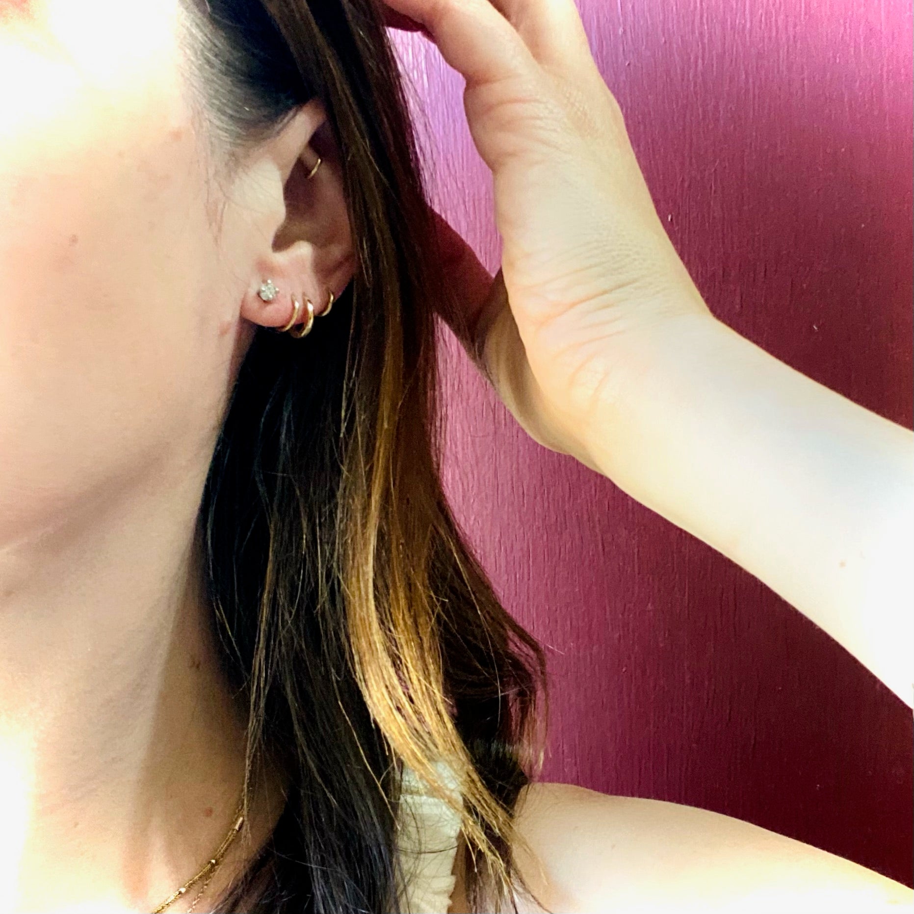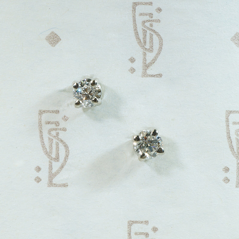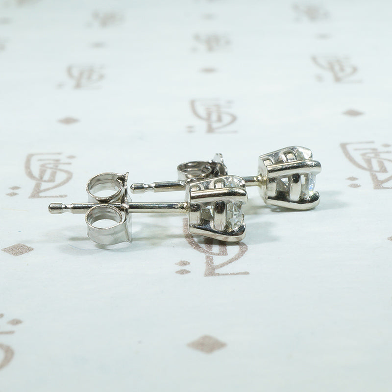 Bright and sparkling Transitional Cut diamonds are set in Recycled 14k white gold stud settings. The diamonds are held in 4 prong banded baskets. The diamonds date to the early 1900's.