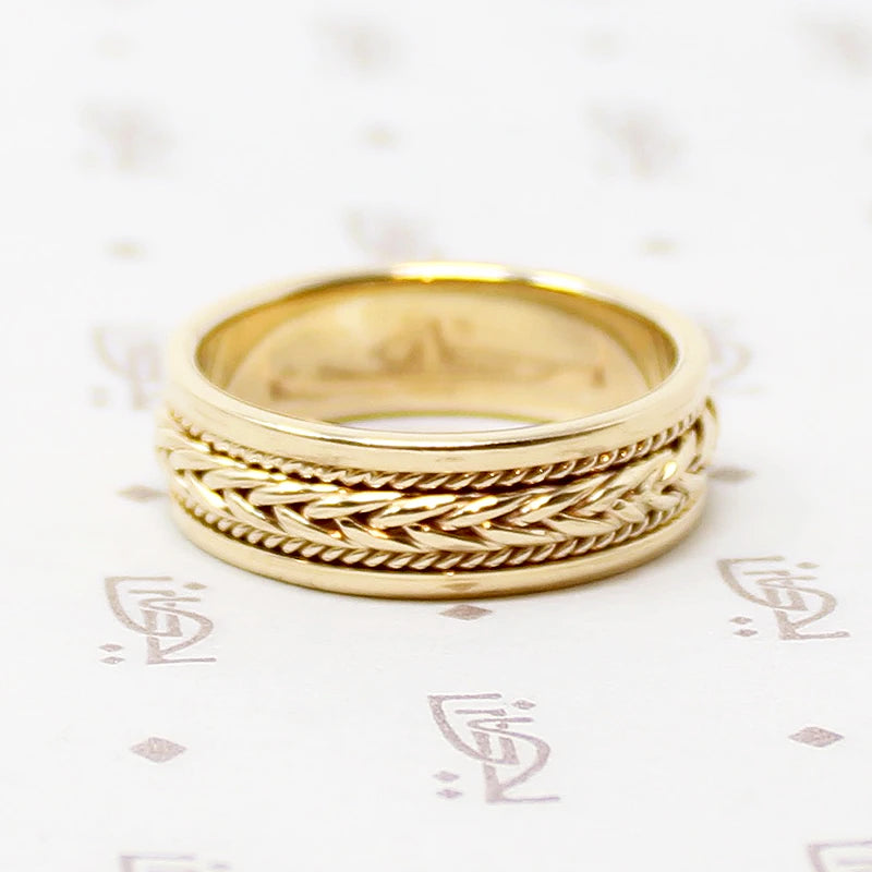 Vintage Mens Wedding Band with Woven Gold Plait