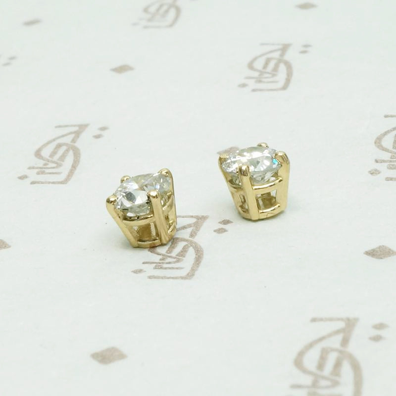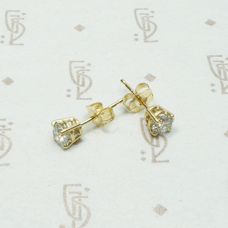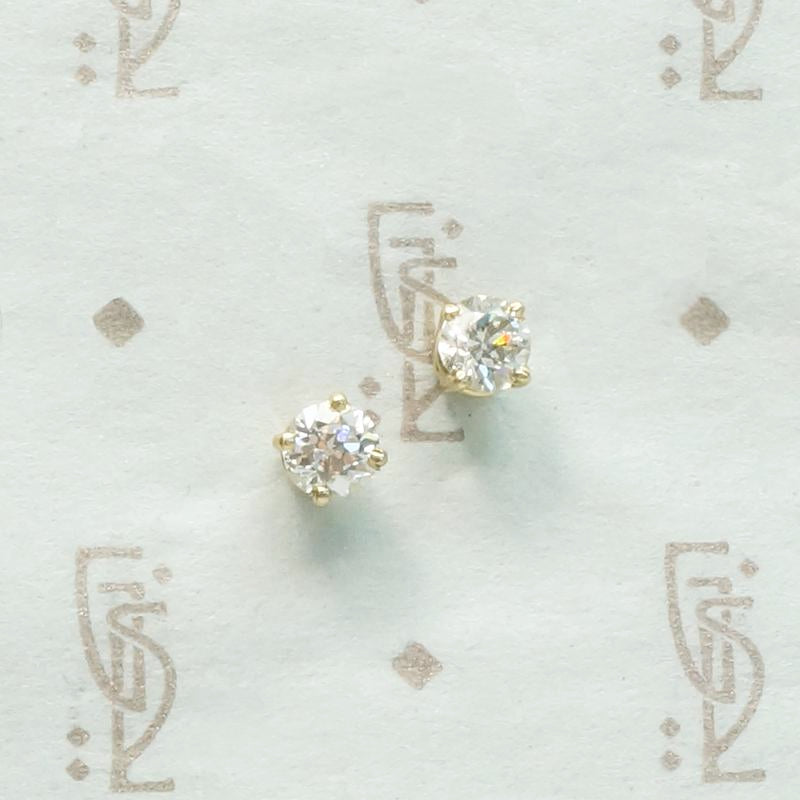 Vintage old European cut diamonds are set in gold basket settings. The diamonds have a VS-SI clarity with H/J color and have a 0.56 total carat weight making each stud slightly over a 1/4 carat each, a very nice size for everyday wear. The settings are made from 14k recycled gold. The four-prong setting is simple and secure. Absolutely timeless, always in style. Diamonds circa 1920.
