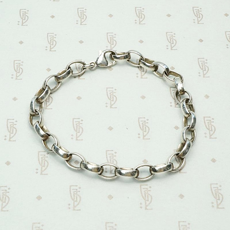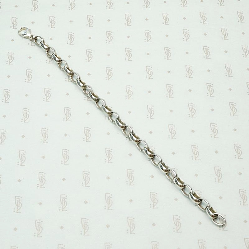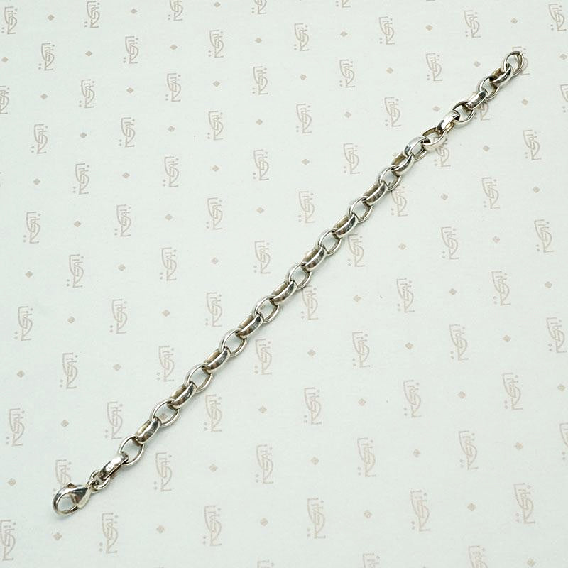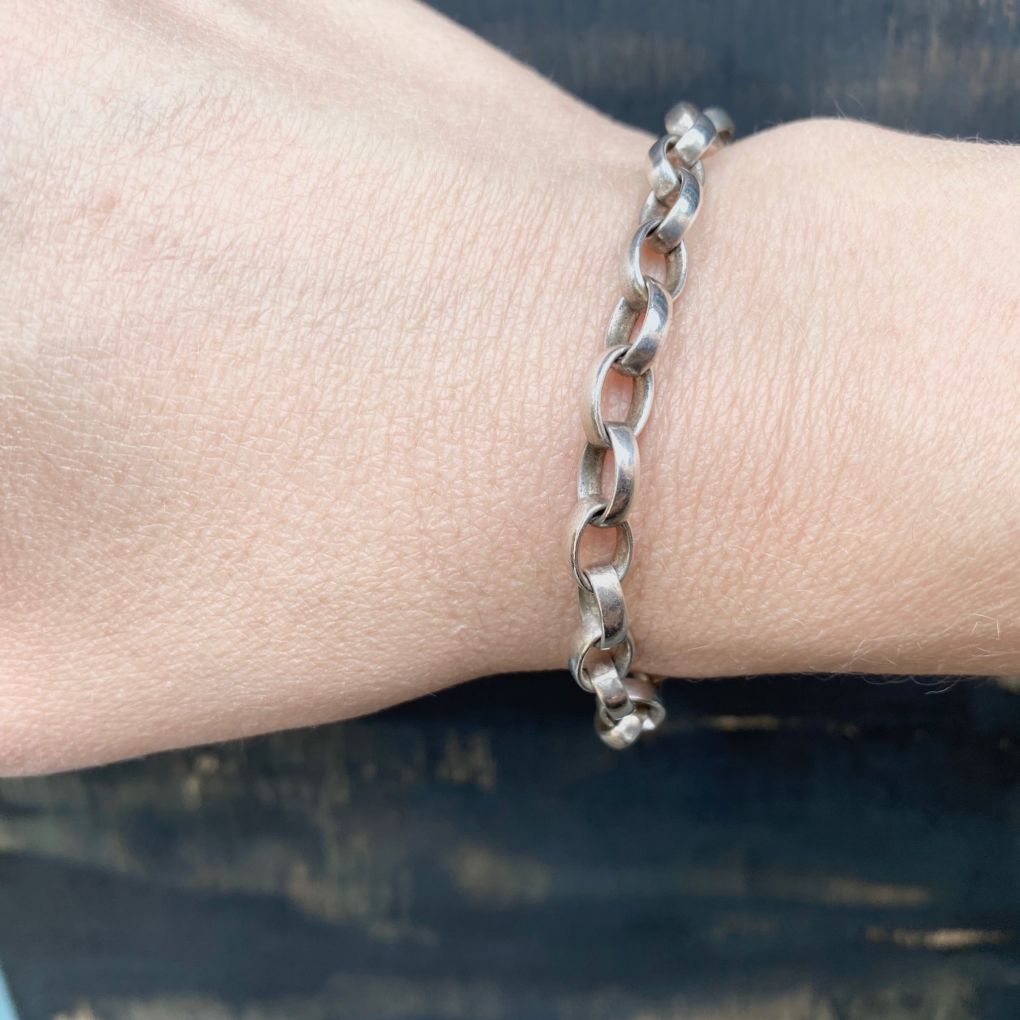 Vintage 1990s sterling silver chain bracelet. The chain is comprised of heavy oval cable links and secured by a chunky lobster claw clasp. Makes an elegant statement worn alone or in a stack.