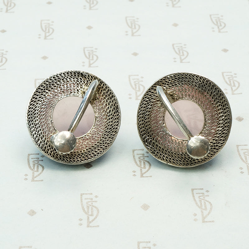 Vintage Sterling Silver Filigree Rose Quartz Earrings