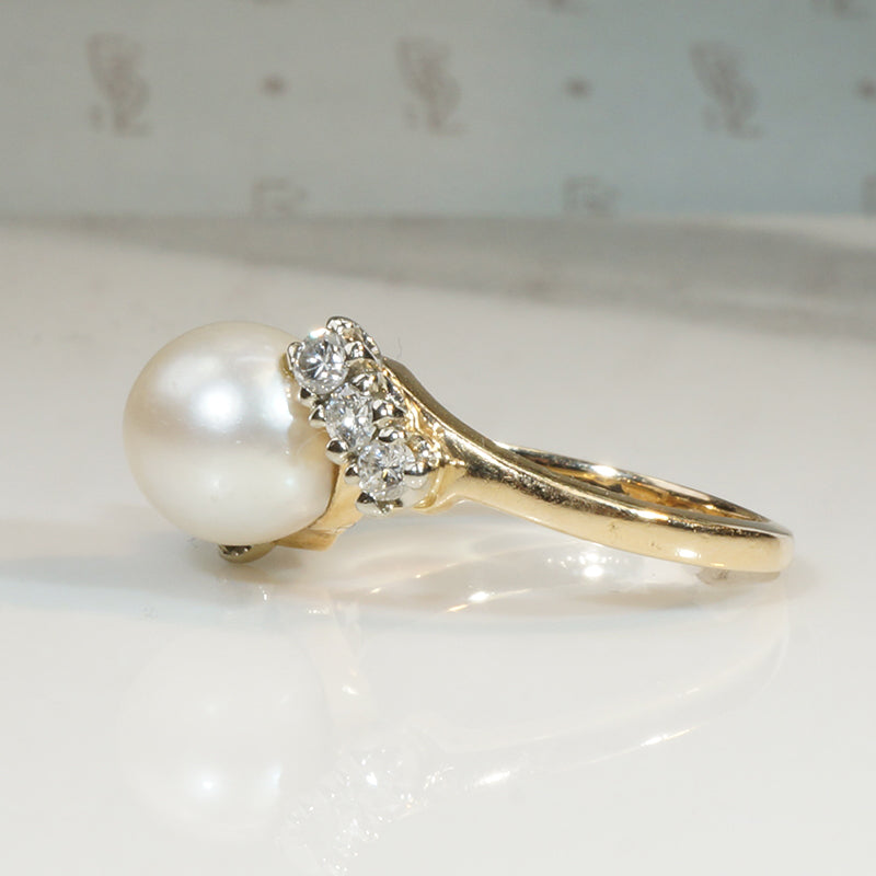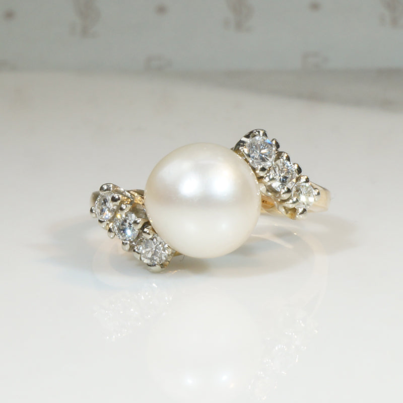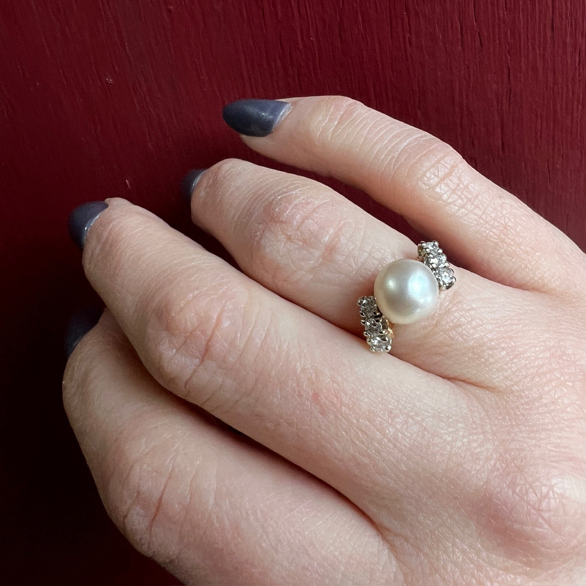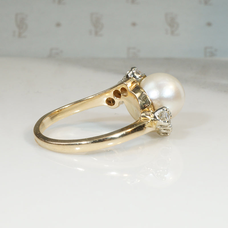 Vivacious Mid-Century Diamond & Pearl Bypass Ring