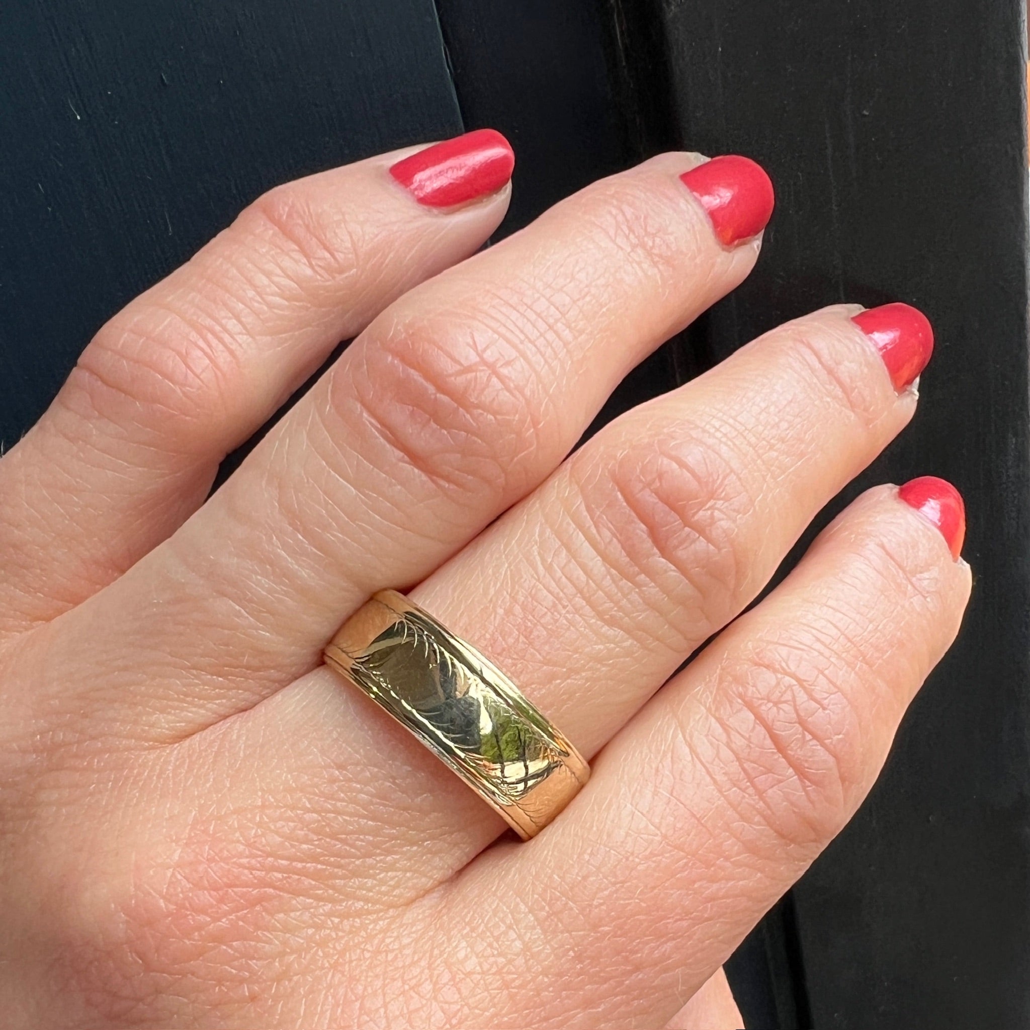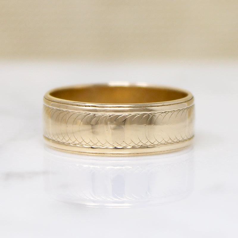 Wide Engraved Gold Wed-Lock Band Size 10.25