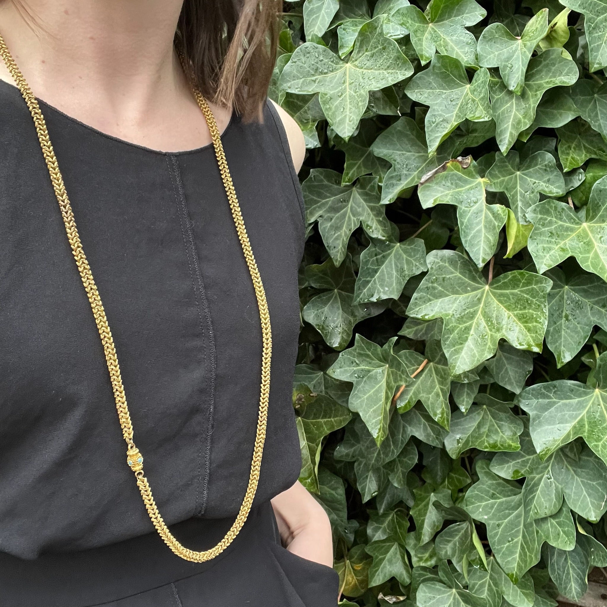 Details.....The chain is 39" long, the mesh chain measures 6.1mm across, the clasp measures 23mm by 8.8mm. In Very Good Antique Condition. You should always expect some wear on vintage and antique pieces, we consider it part of the charm.