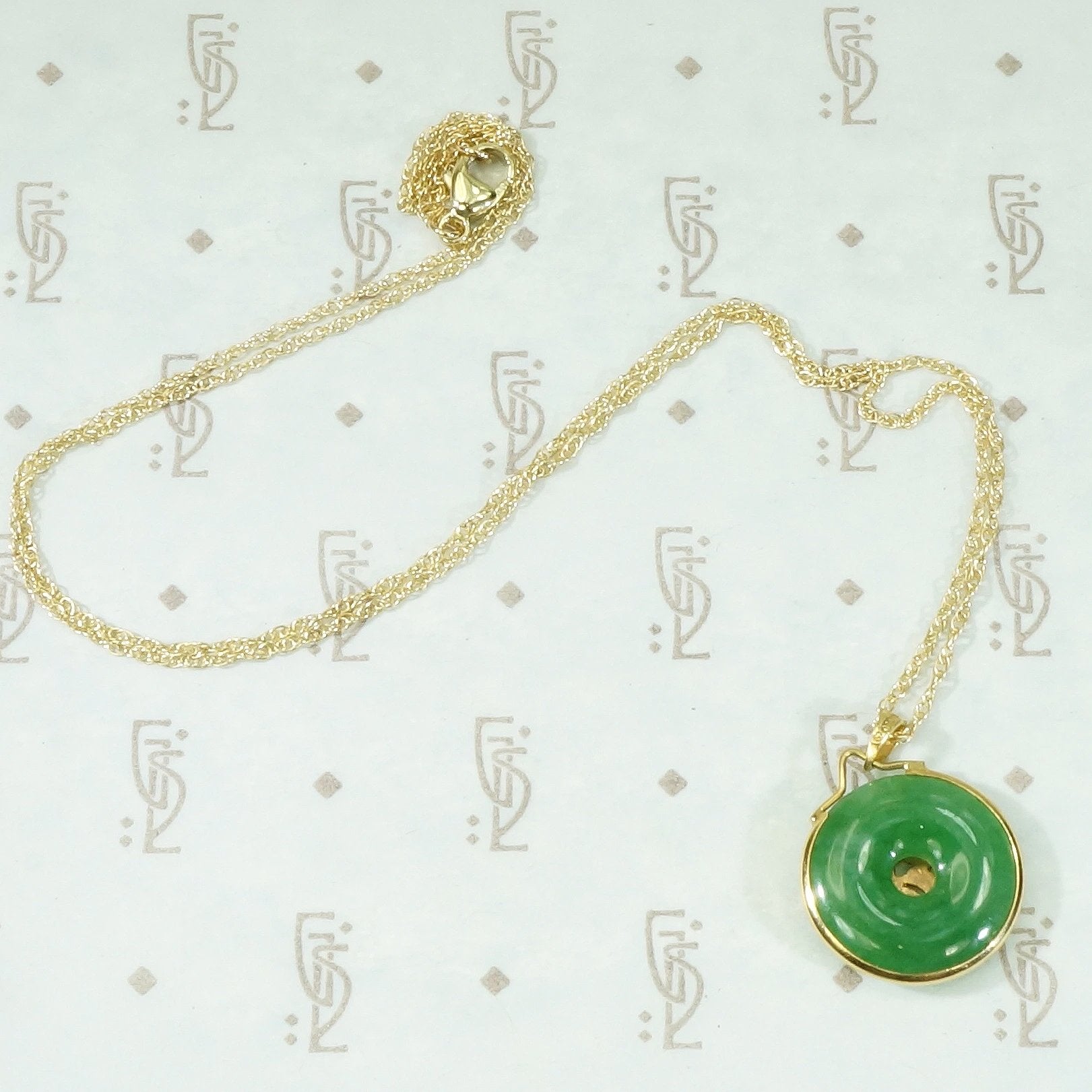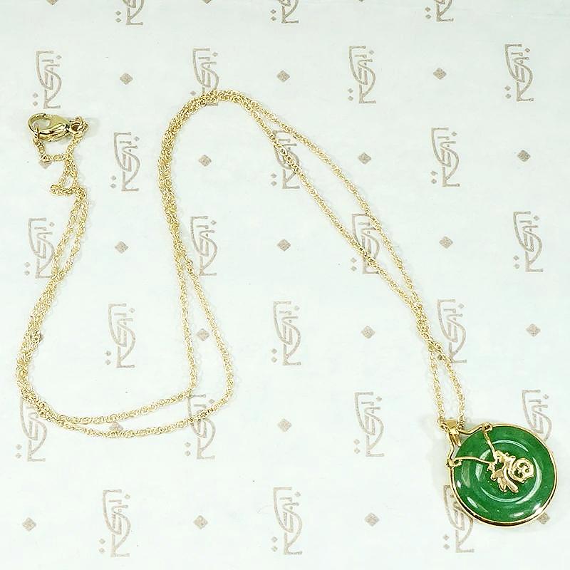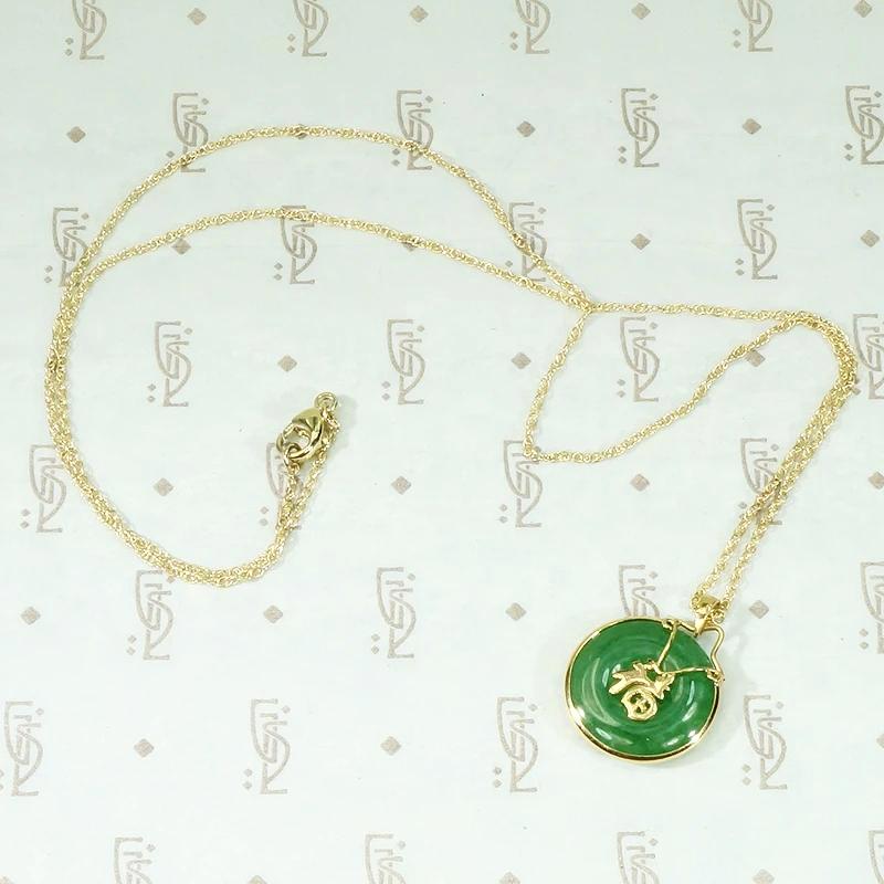 Details.....The jade pendant measures .83" x.64". In Excellent Vintage Condition. The 14k recycled gold chain is 18" long. You should always expect some wear on vintage and antique jewels, we consider it part of the charm.
