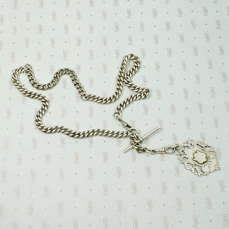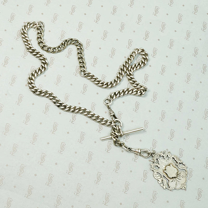 The chain is pictured with an English medal fob, a wonderful compliment to the piece and sold separately.