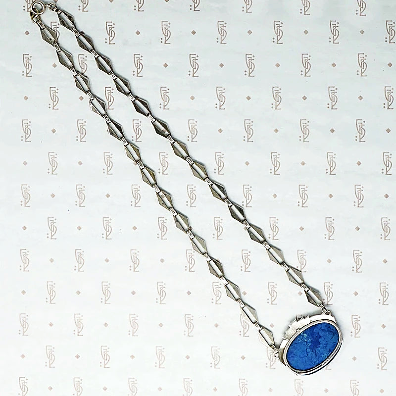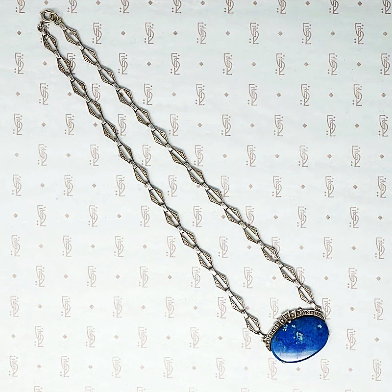 Art Deco Lapis Necklace in Silver and Marcasite
