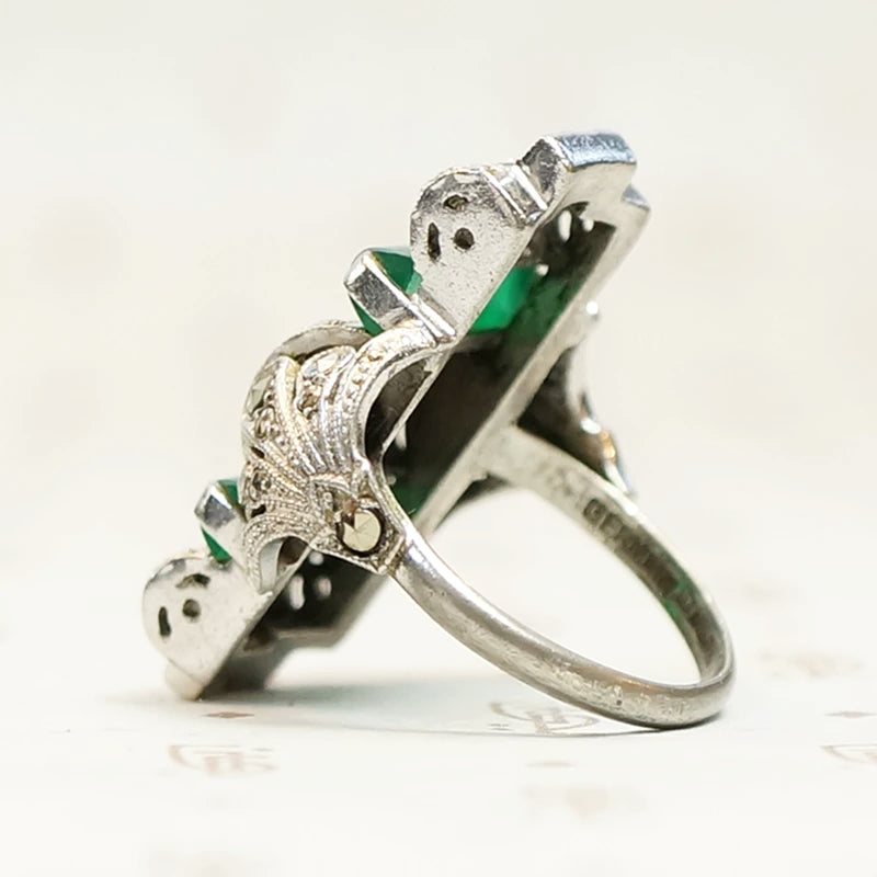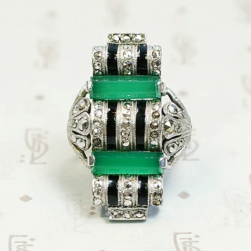 Unbelievable German Art Deco Chrysoprase and Marcasite Ring