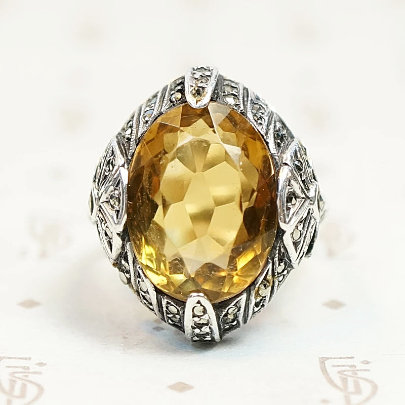 Brilliant Citrine Art Deco Fahrner Ring