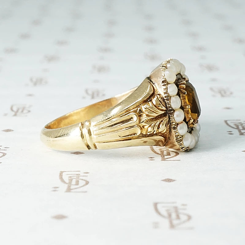 Georgian Golden Citrine and Pearl Ring