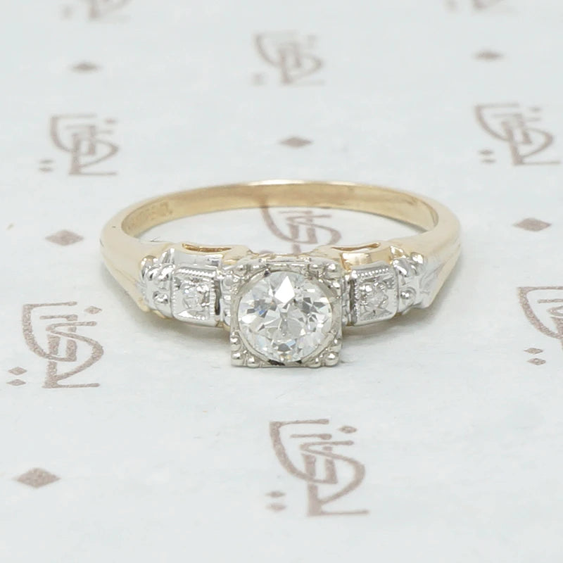 1920's Yellow Gold Filigree Diamond Engagement Ring