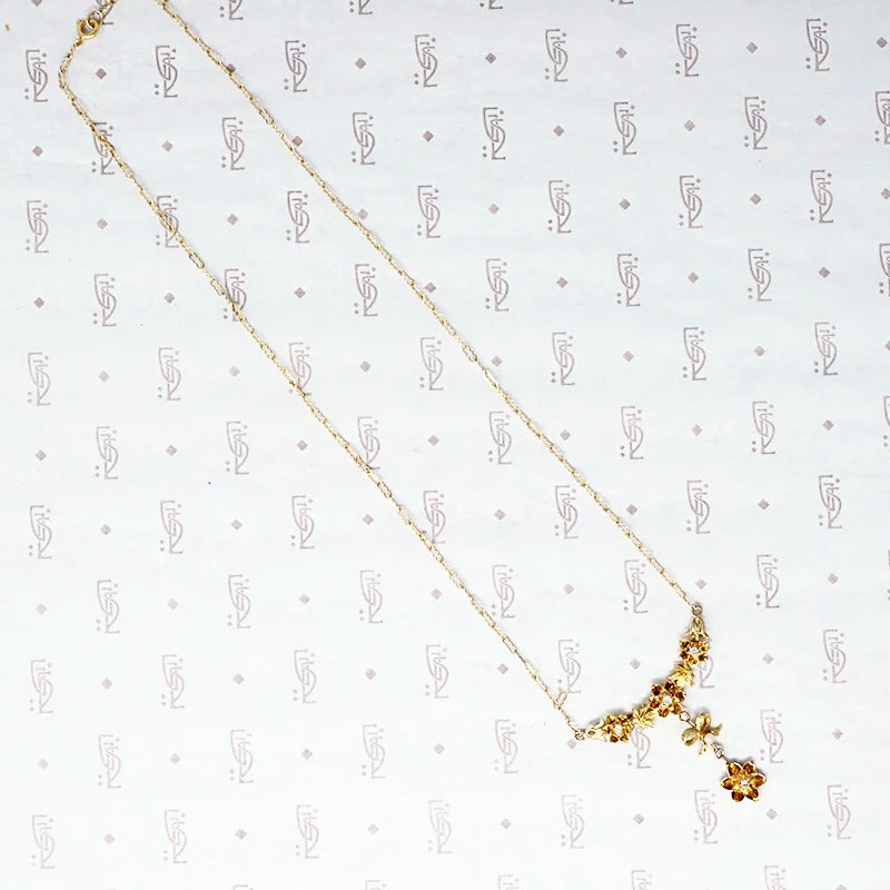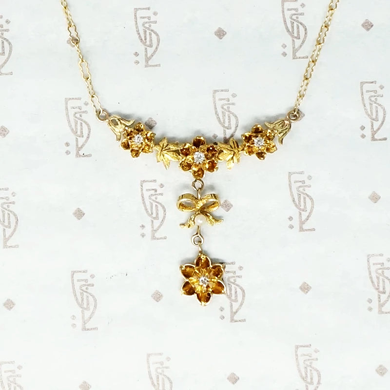 Flowers and Bow Diamonds and Pearl Necklace