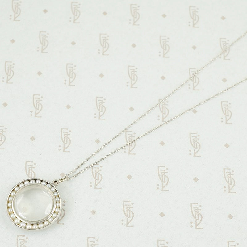 Vintage White Gold Crystal Locket with Pearls