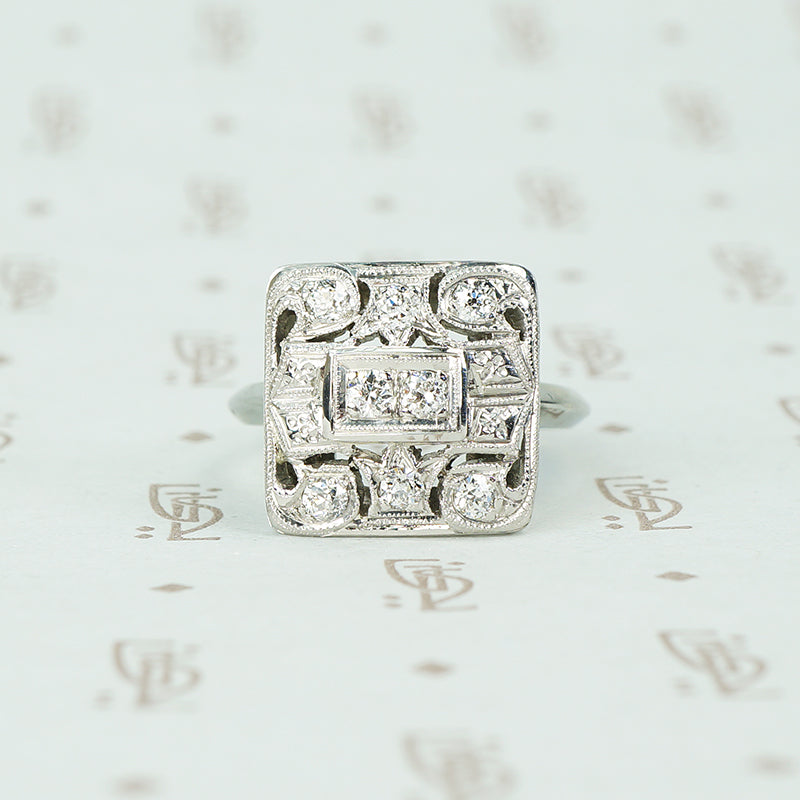 Fab Square Art Deco OEC Diamond Ring