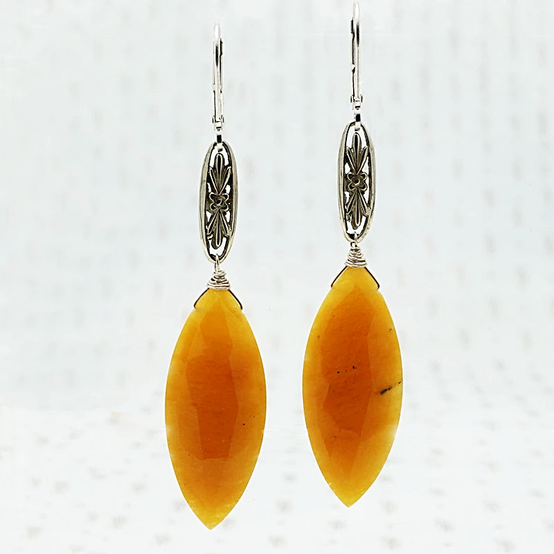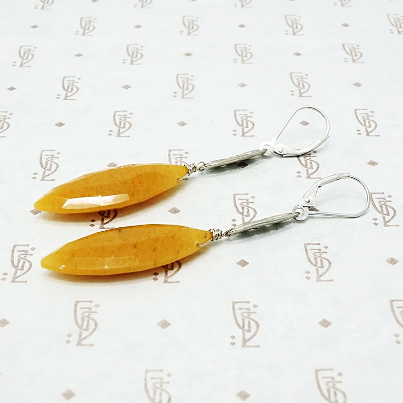 The Marché Pendant Drop Earrings by brunet in White Gold with Aventurine