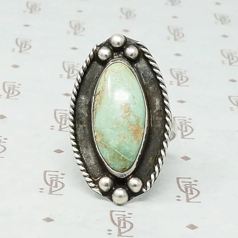 Mint Green Turquoise Sterling Ring Signed Mexico