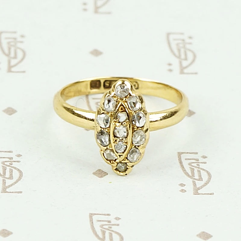 Exquisite Antique 18k Old Euro Diamond Navette Ring