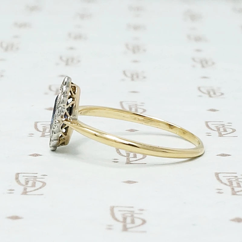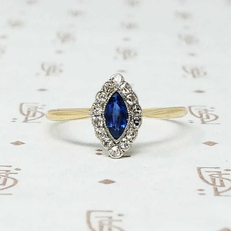 1920s Marquis Cut Sapphire Diamond Halo Ring