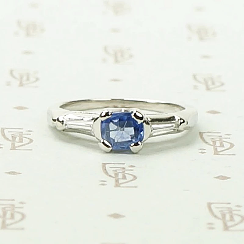 Cornflower Blue Antique Sapphire in 1940's Platinum
