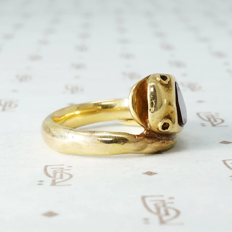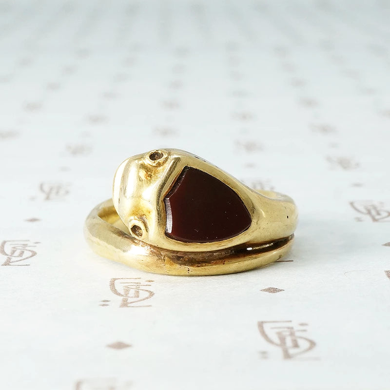 Sweet and Slinky Snake Ring with Carnelian Shield