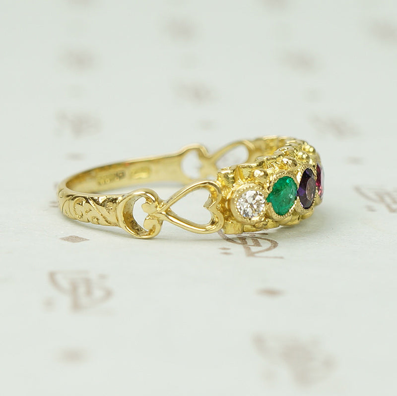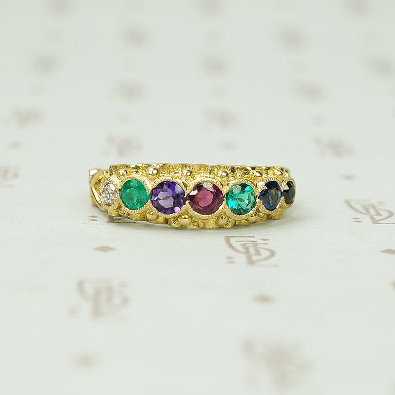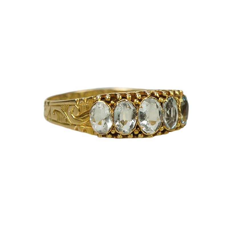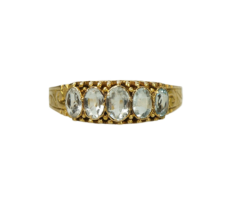 Victorian Gold Band with Aqua Beryl and Crystal Gems