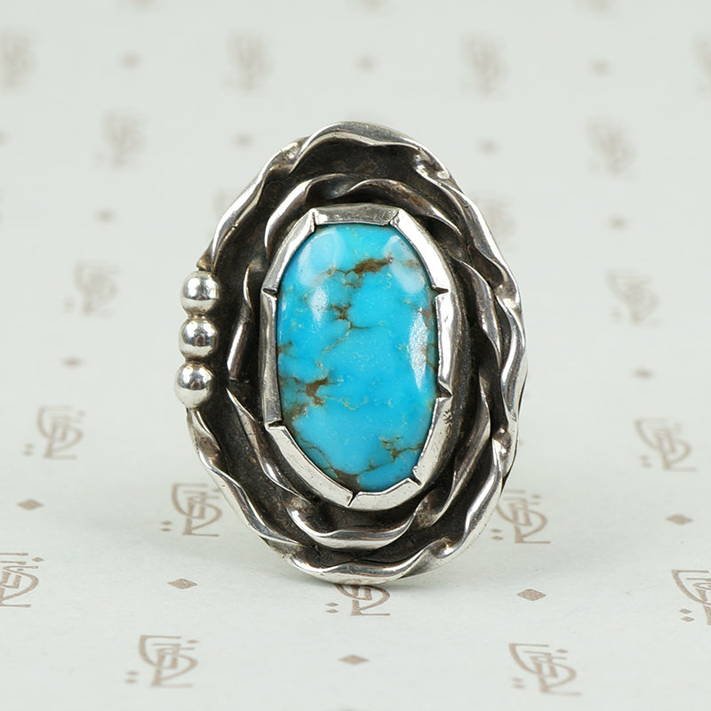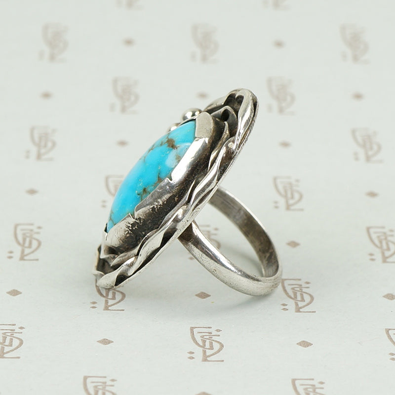 Robins Egg Blue Turquoise Surrounded by Rose Cut Diamonds