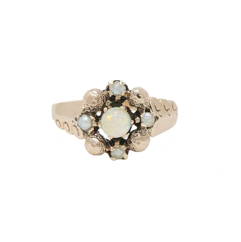 The Flashing Beauty Opal and Old European Cut Diamond Ring