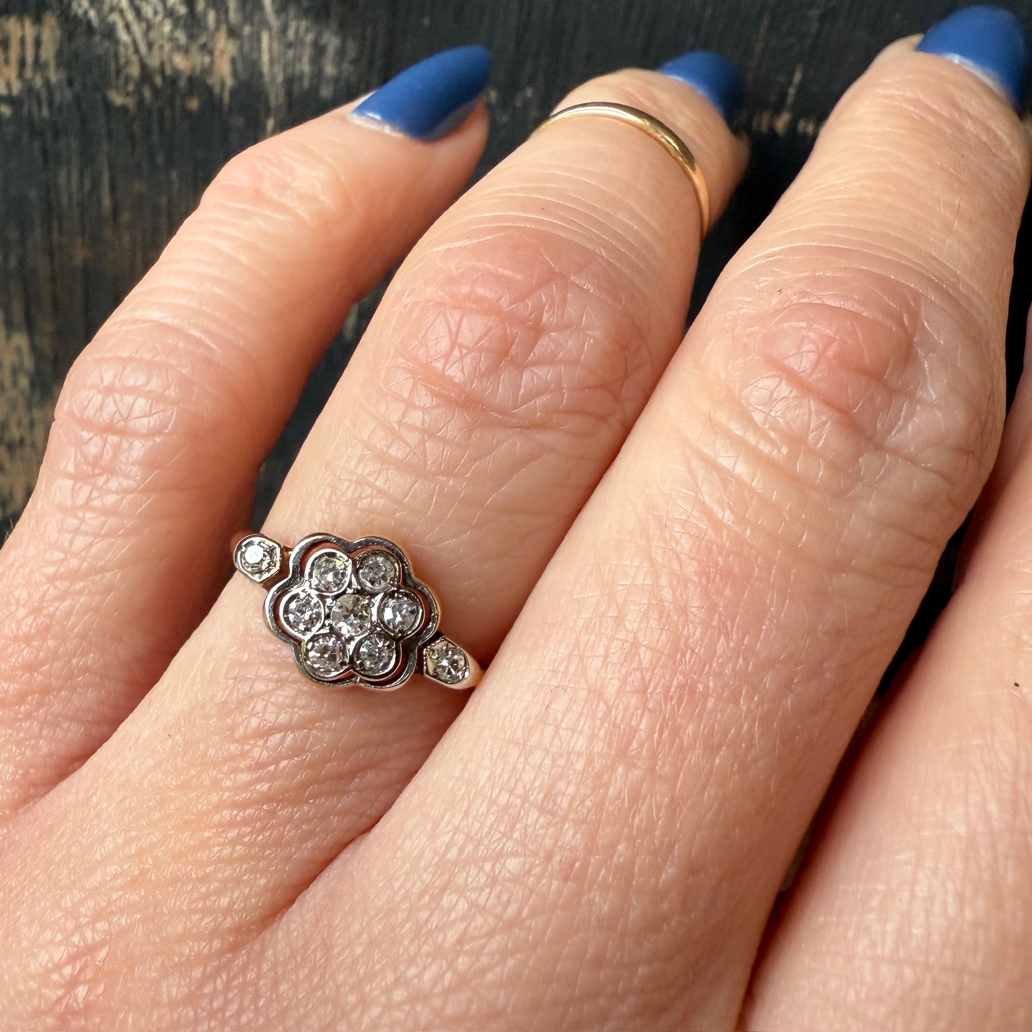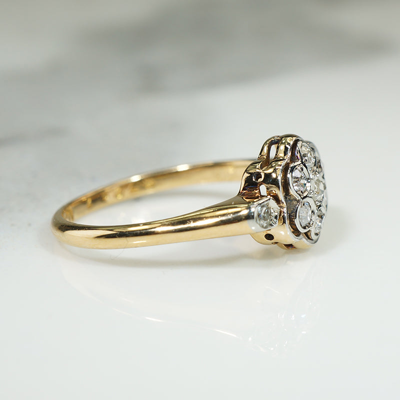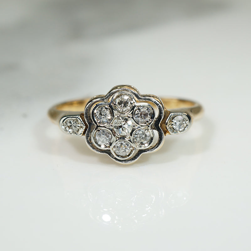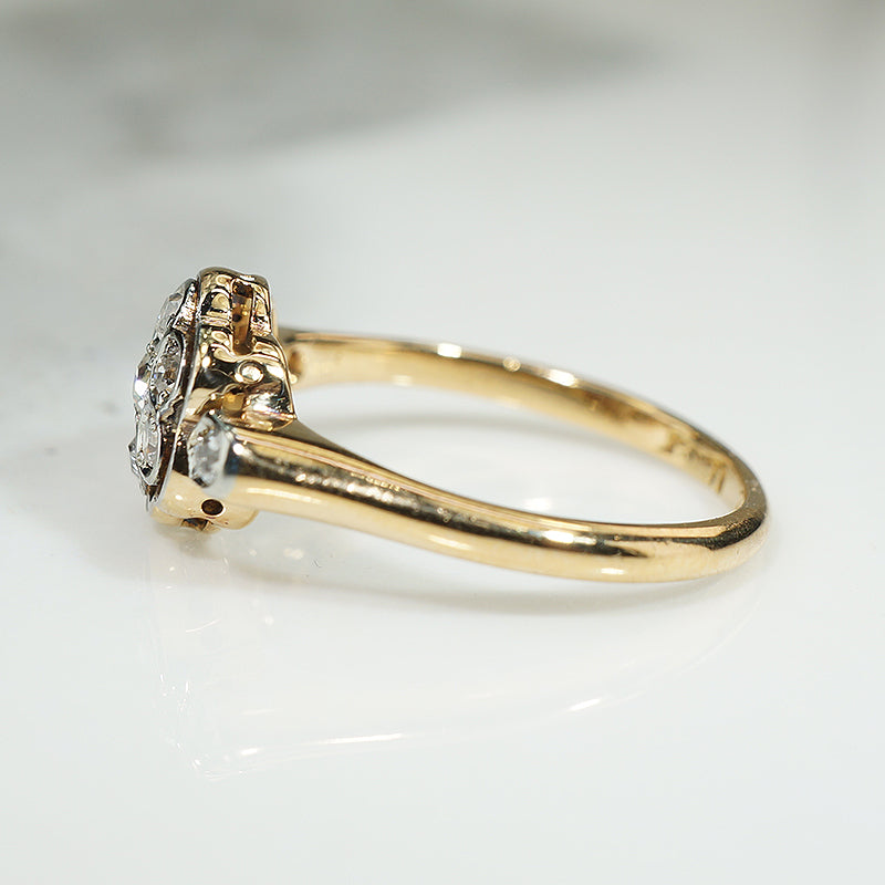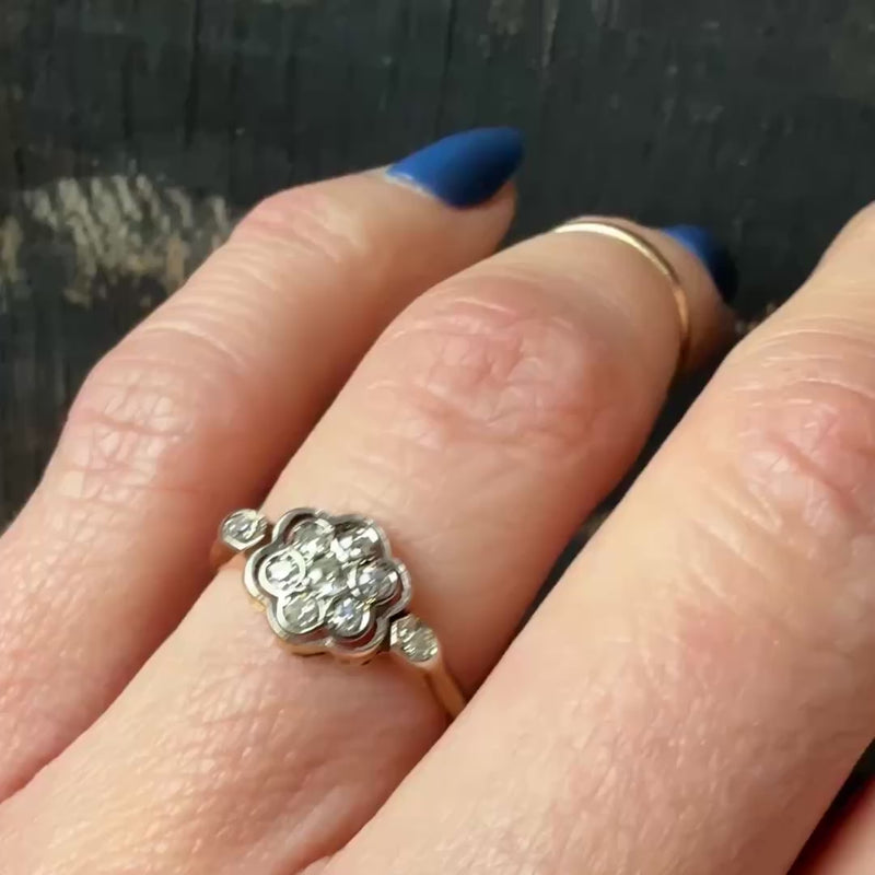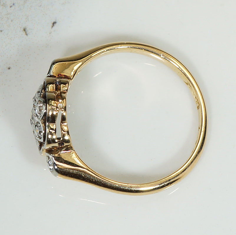 Vintage 18k Gold and Platinum Framed Floral Ring