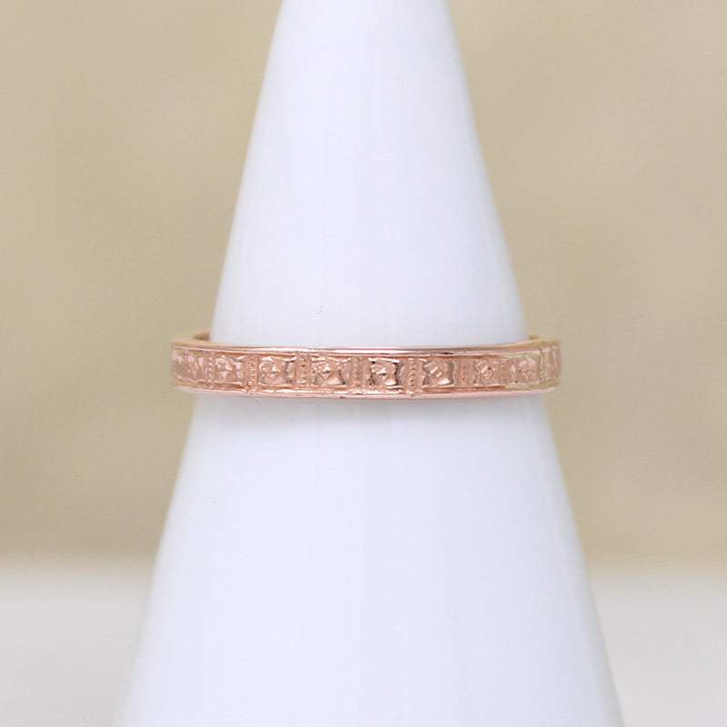 Hand cast from an original 1920s vintage wedding band in our collection. This bands was made in house, using recycled 14k gold from a green certified refinery.