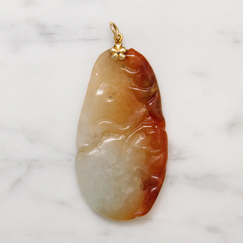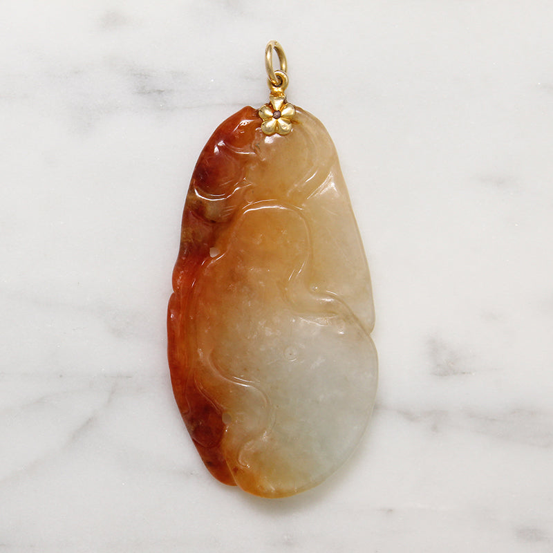 Antique Carved Jade Lily Pad & 14k Gold Pendant