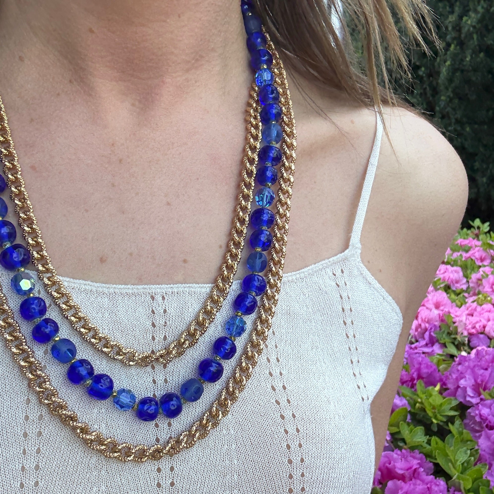 Blue Beads & Blossoms Necklace Signed Original by Robert