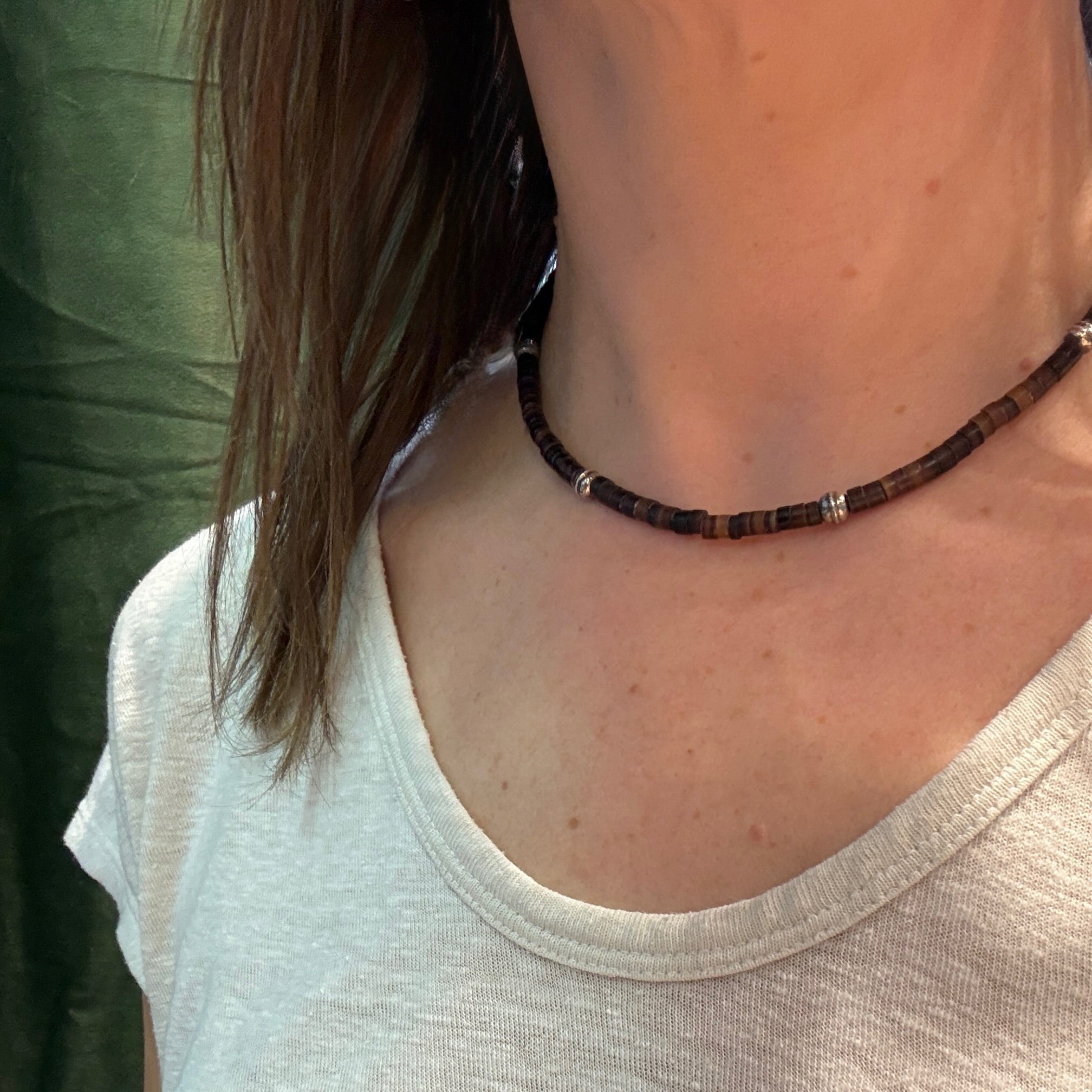 Navajo Brown Heishi Shell & Sterling Bead Necklace