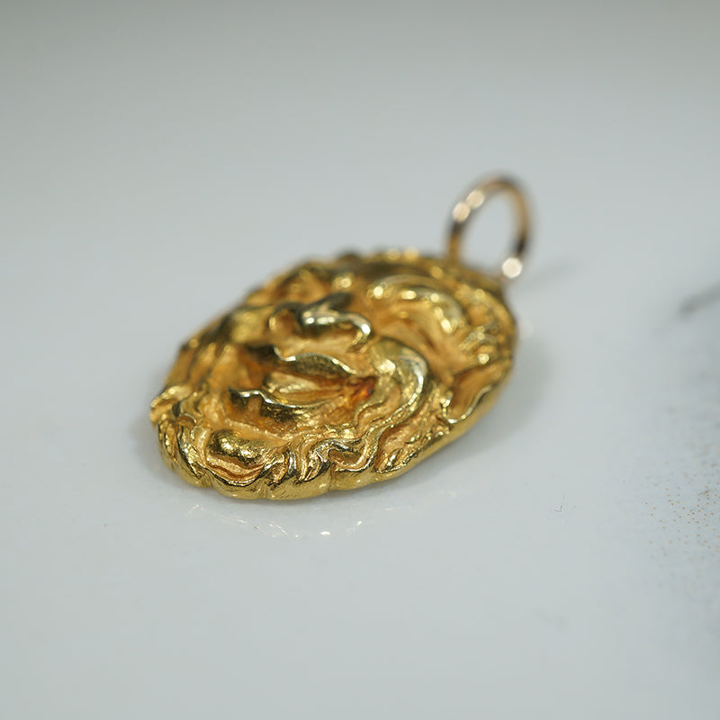 A friend of Dionysus this jolly detailed Pan has a curling beard and a pair of horns on his forehead. This lovely Pan brings Puck of The Midsummer Night's Dream to mind. 14k yellow gold, dates from c1910.
