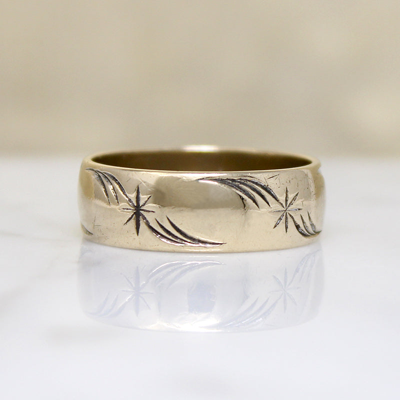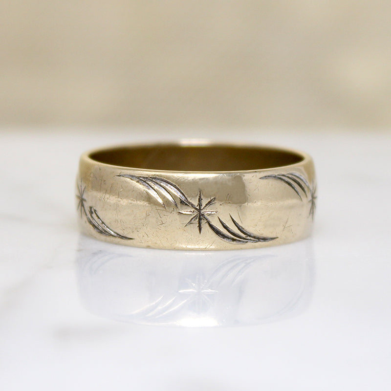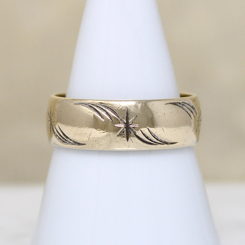 Gold Band Engraved with Stars & Flourishes Size 10.25