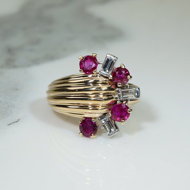 Gorgeous Retro Ruby and Diamond Ring