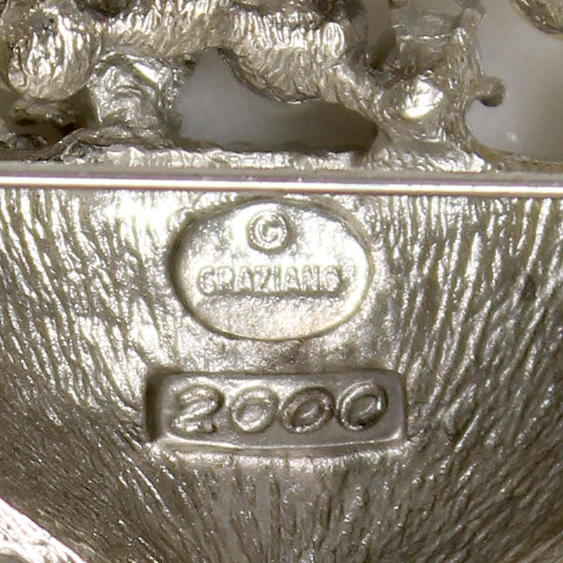 Graziano was founded by Robert J. Graziano in 1976. Graziano brooches are known for their elaborate, fashion-forward designs, often featuring Austrian crystals and enameled metals.