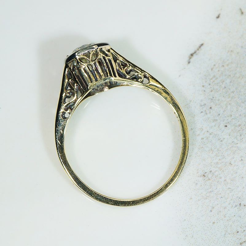 Lovely Yellow Gold Filigree OEC Diamond Ring