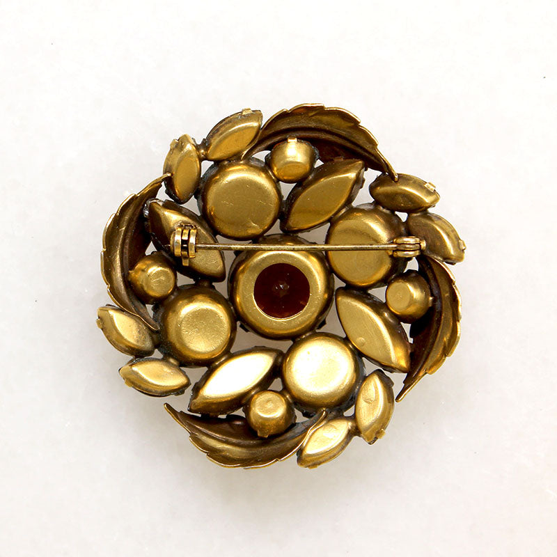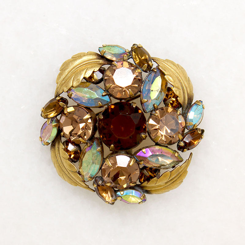 Mid Century Root Beer & AB Crystal Brooch