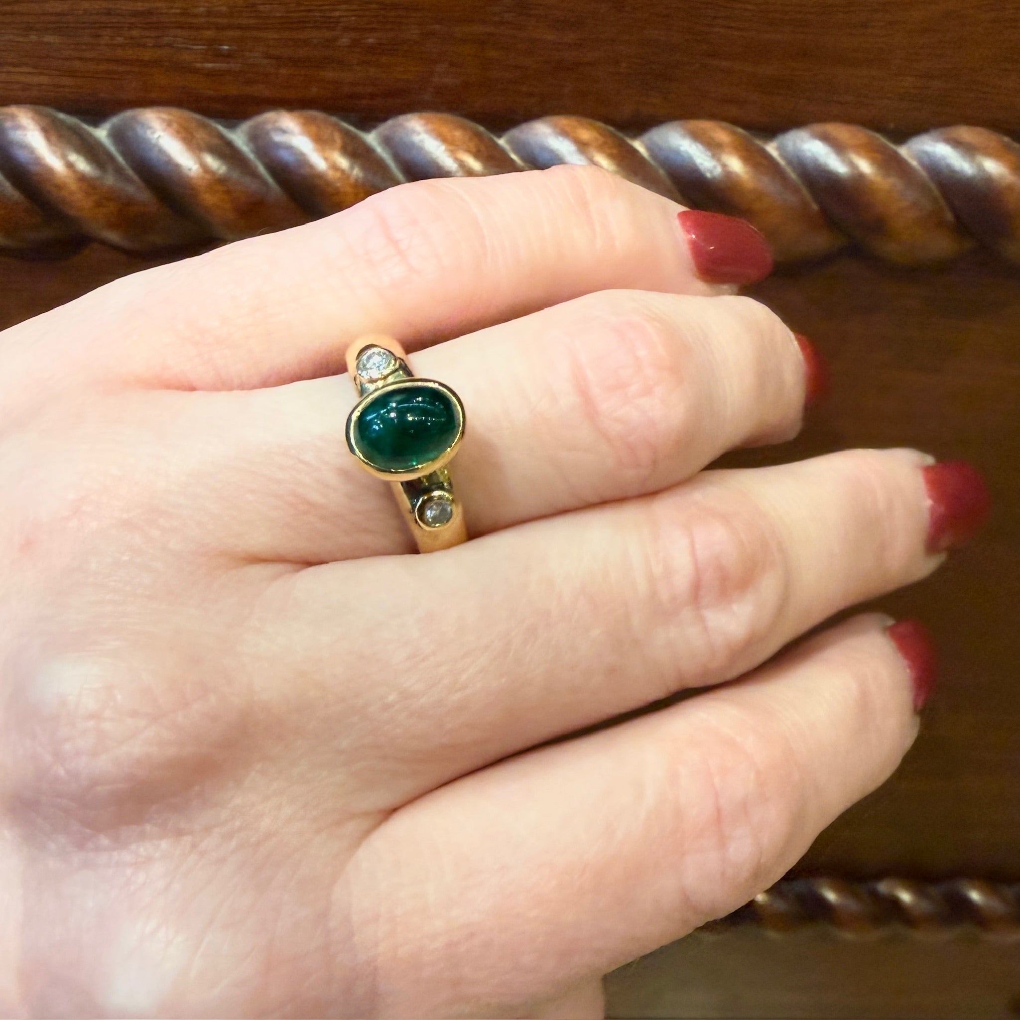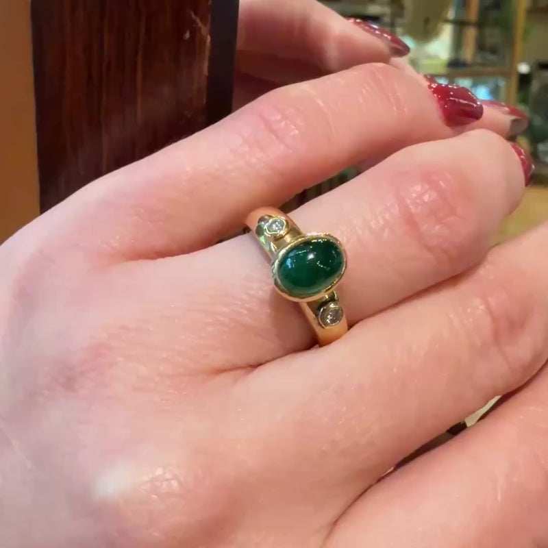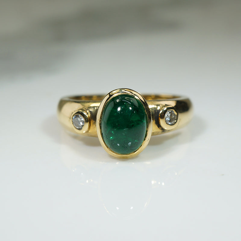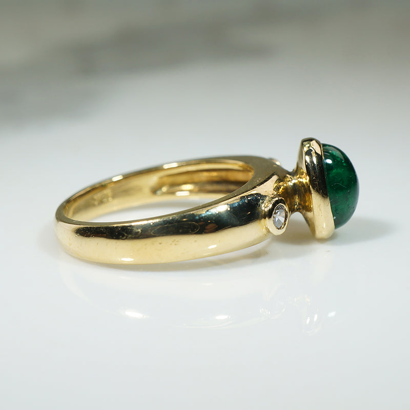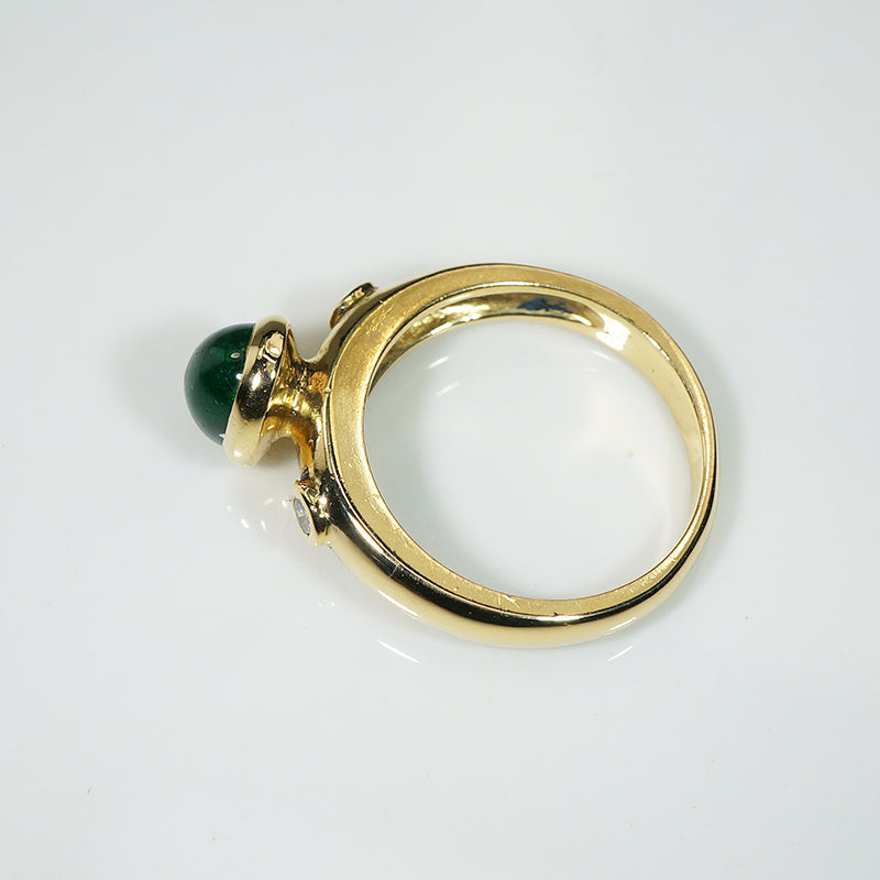 Rich Green Emerald Cabochon 18k Gold Ring