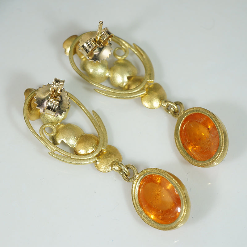 Gold Flowery Spessartite Garnet Dangly Earrings