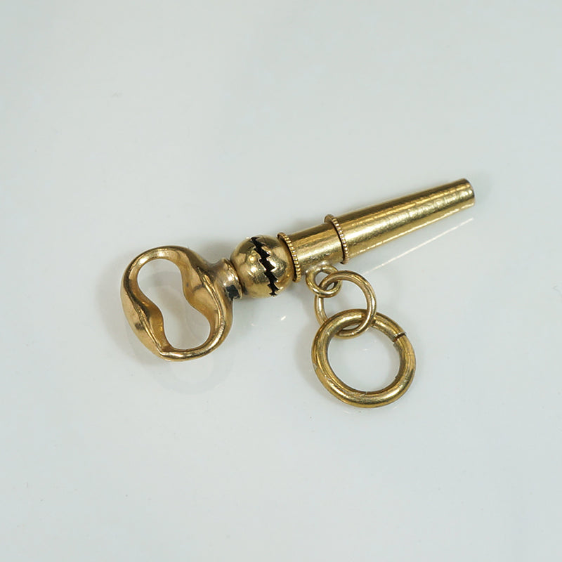 This watch key takes the form of an an actual key. This rare jewel is especially interesting as it incorporates a ratcheting technique for winding your watch. A pretty and interesting piece of history. 18k, Circa 1840.