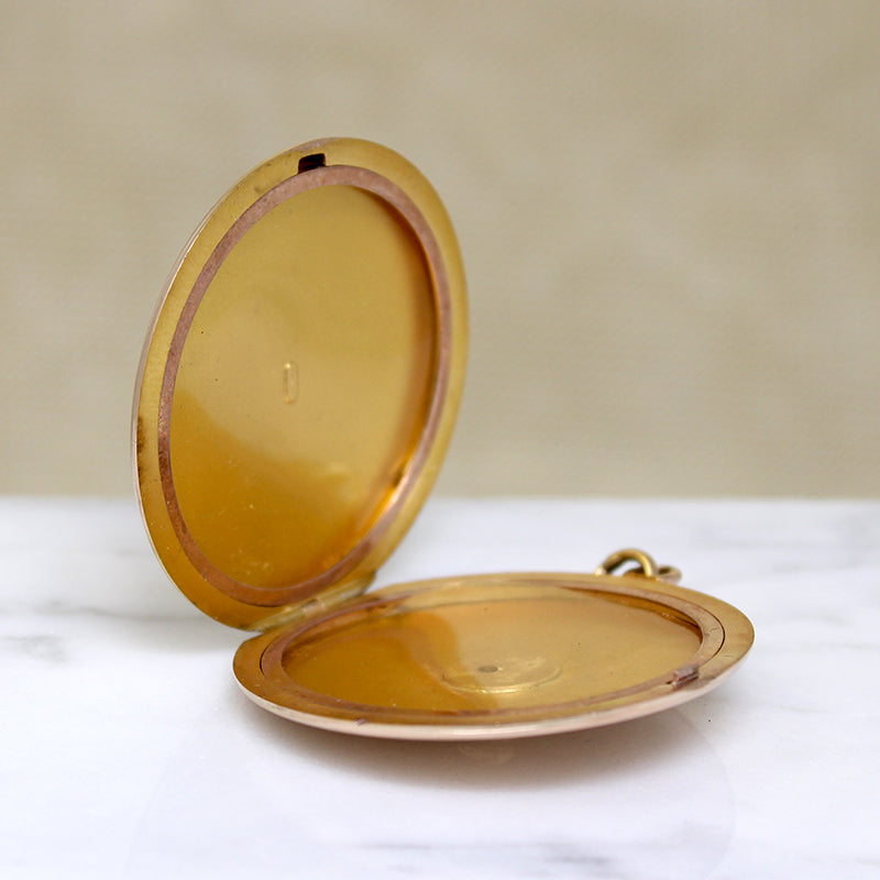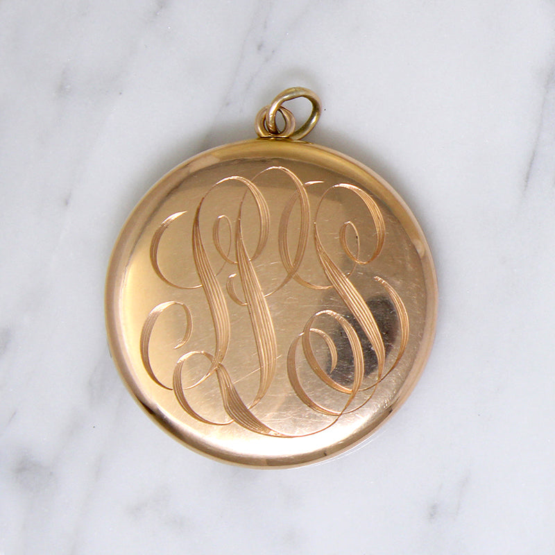 Details.....The locket measures 1.72" in diameter, 1.90" with bale. The piece weighs 22.8 grams. In Very Good Antique Condition. You should always expect some wear on vintage and antique pieces; we consider it part of the charm.