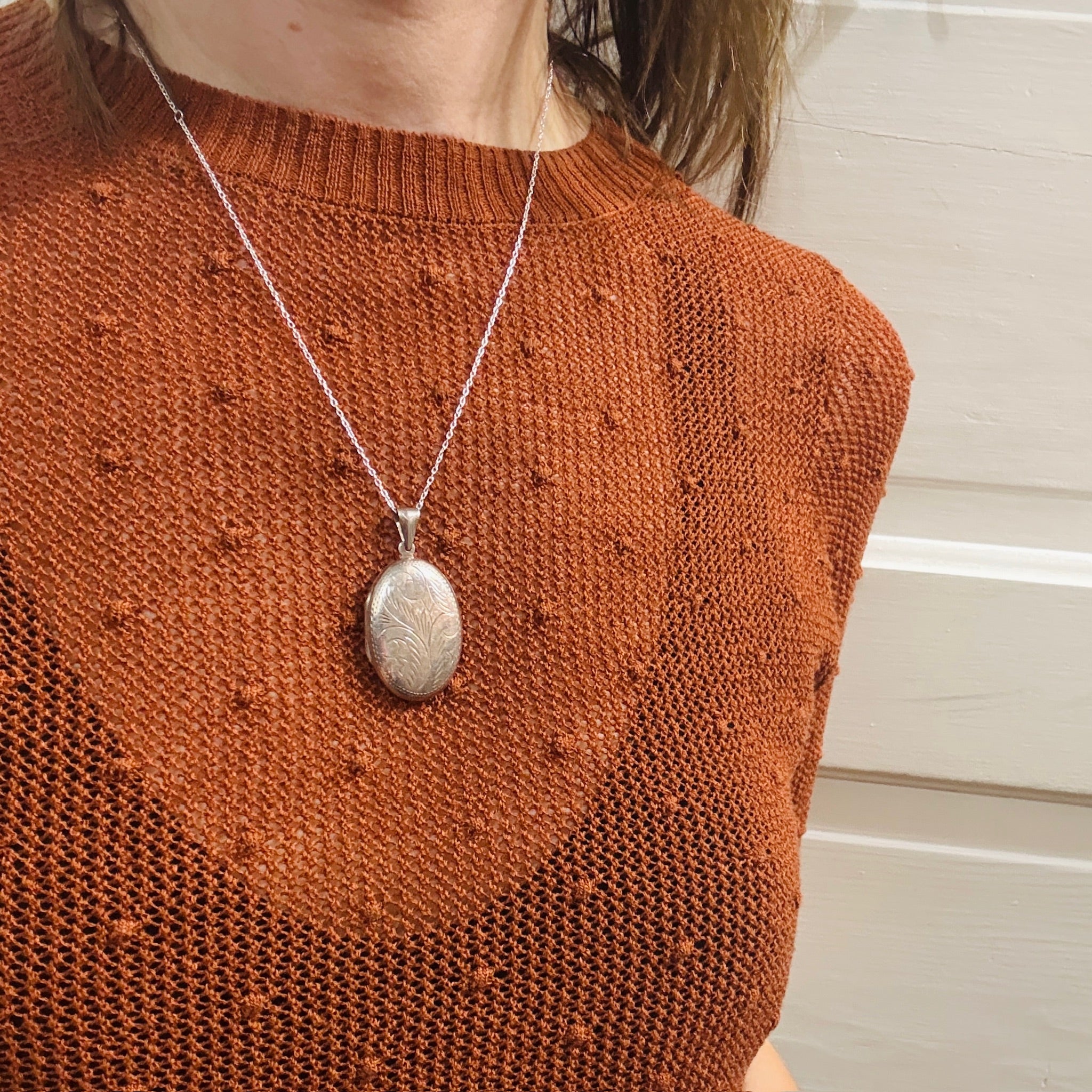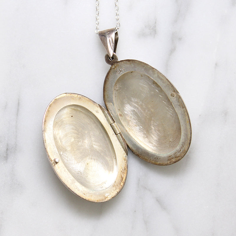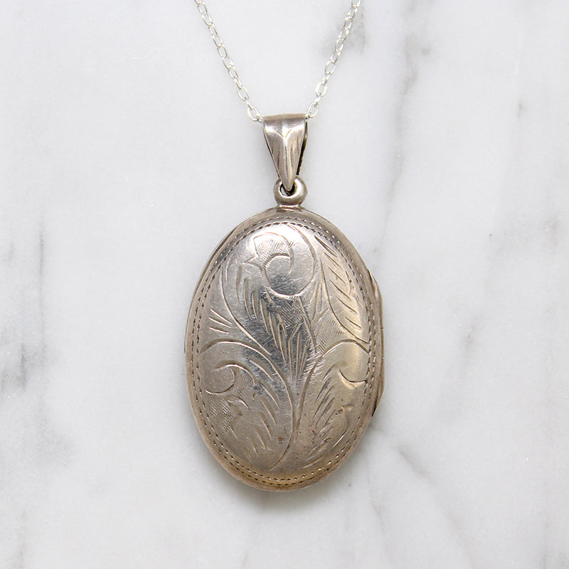 Large Engraved Sterling Silver Oval Locket
