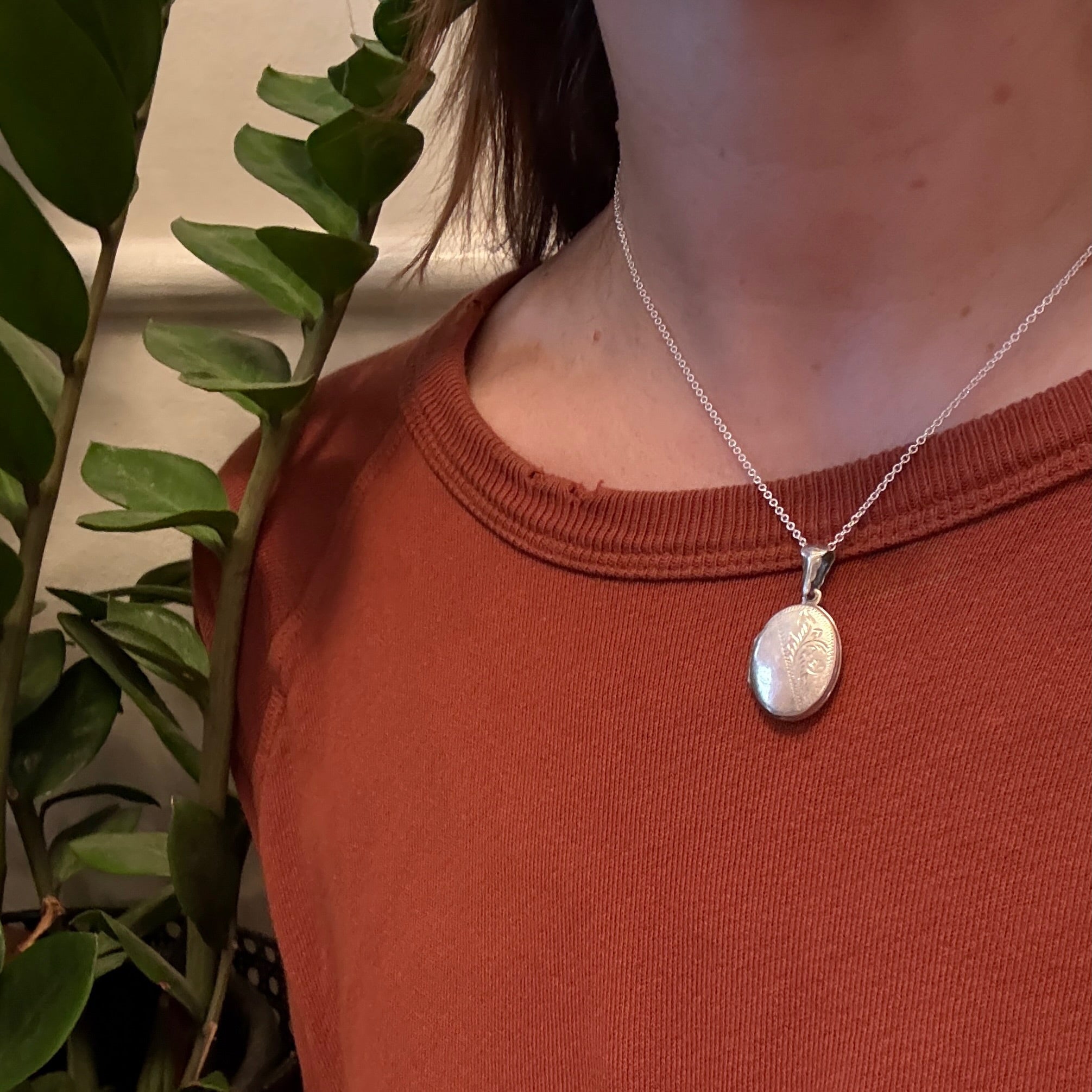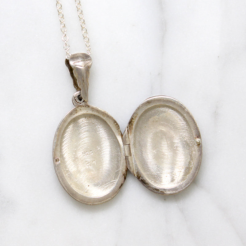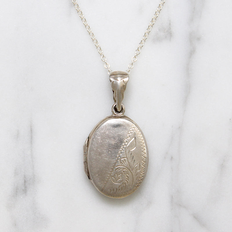 Pretty Engraved Sterling Silver Oval Locket