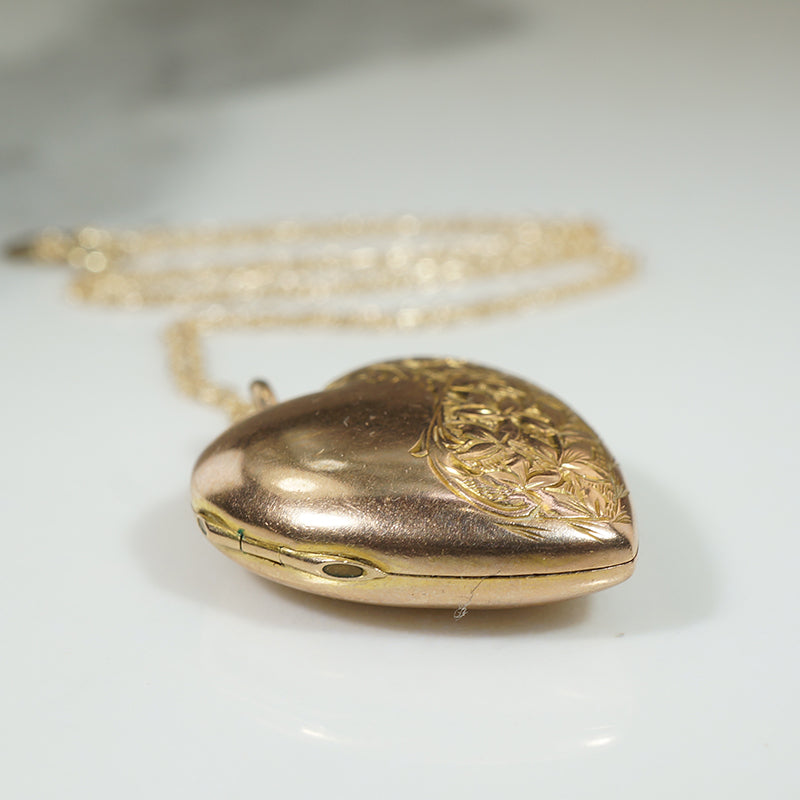 Pretty Puffy Heart Antique Gold Locket