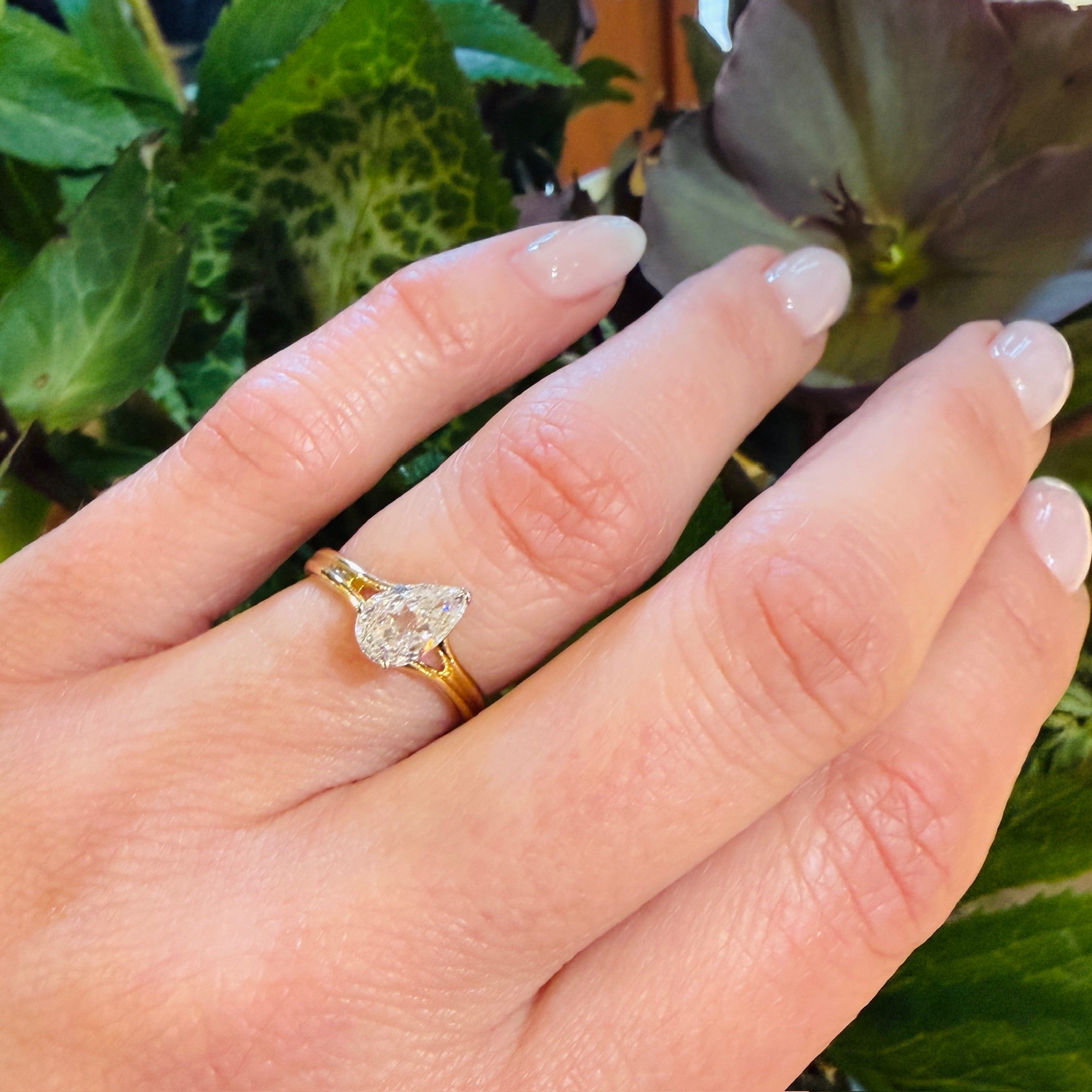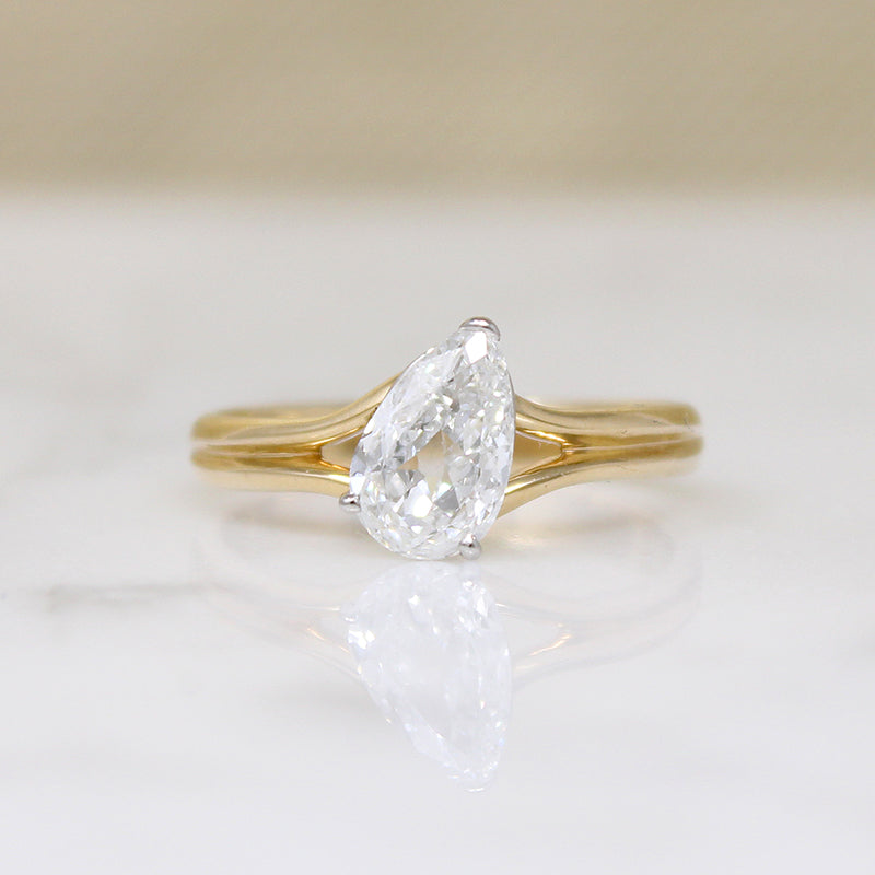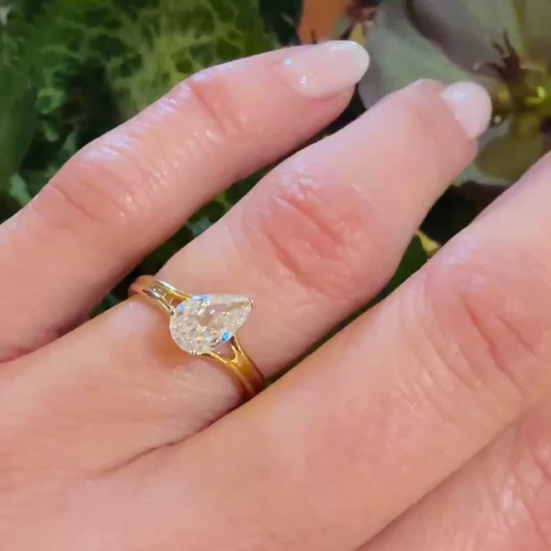 Bright White & Sparkling Pear Cut Diamond Solitaire Ring
