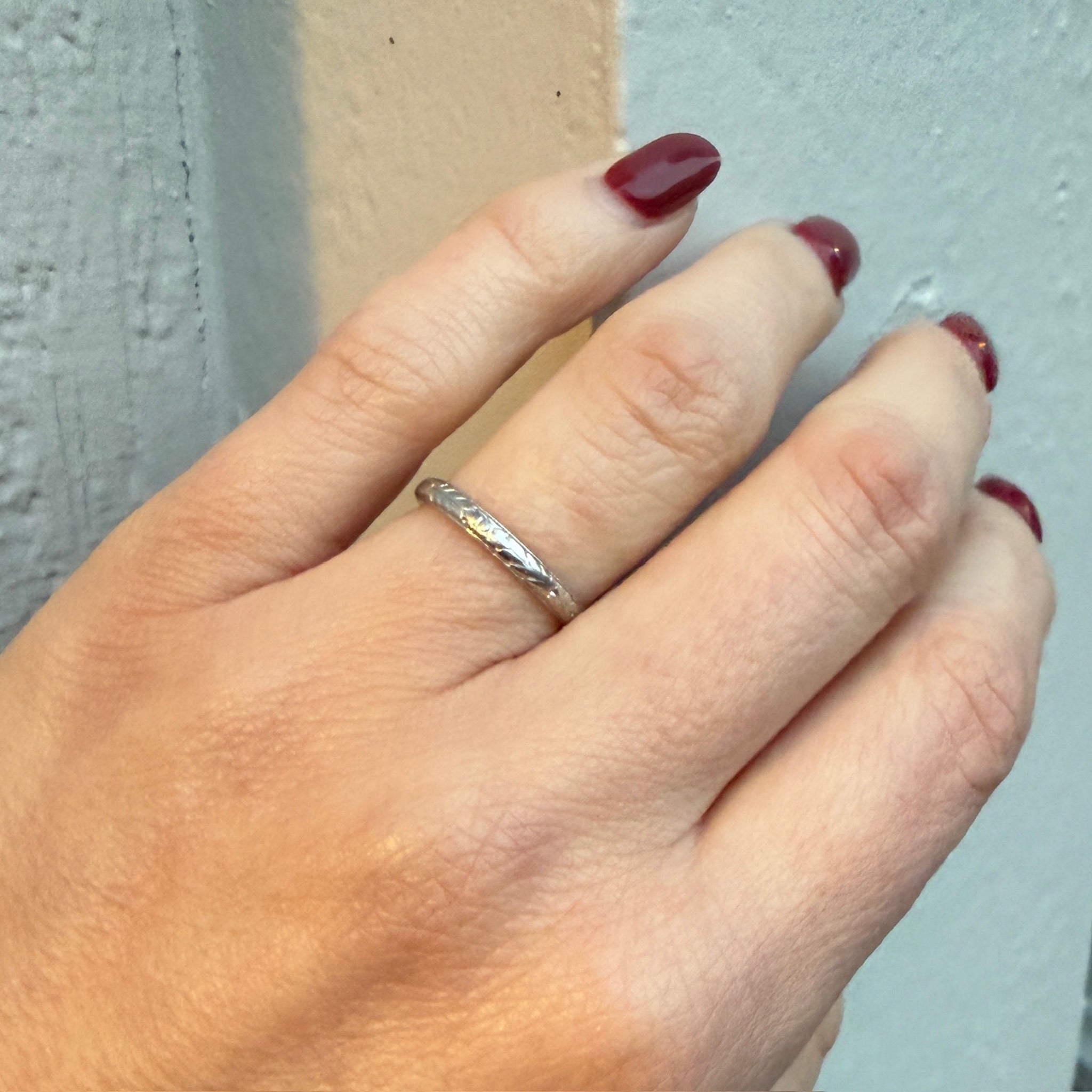 Details.....This band is a size 5.5. It cannot be sized. The band measures 2.2mm wide. In Very Good Antique Condition. You should expect all vintage and antique jewels to show some wear, we consider it part of their charm.