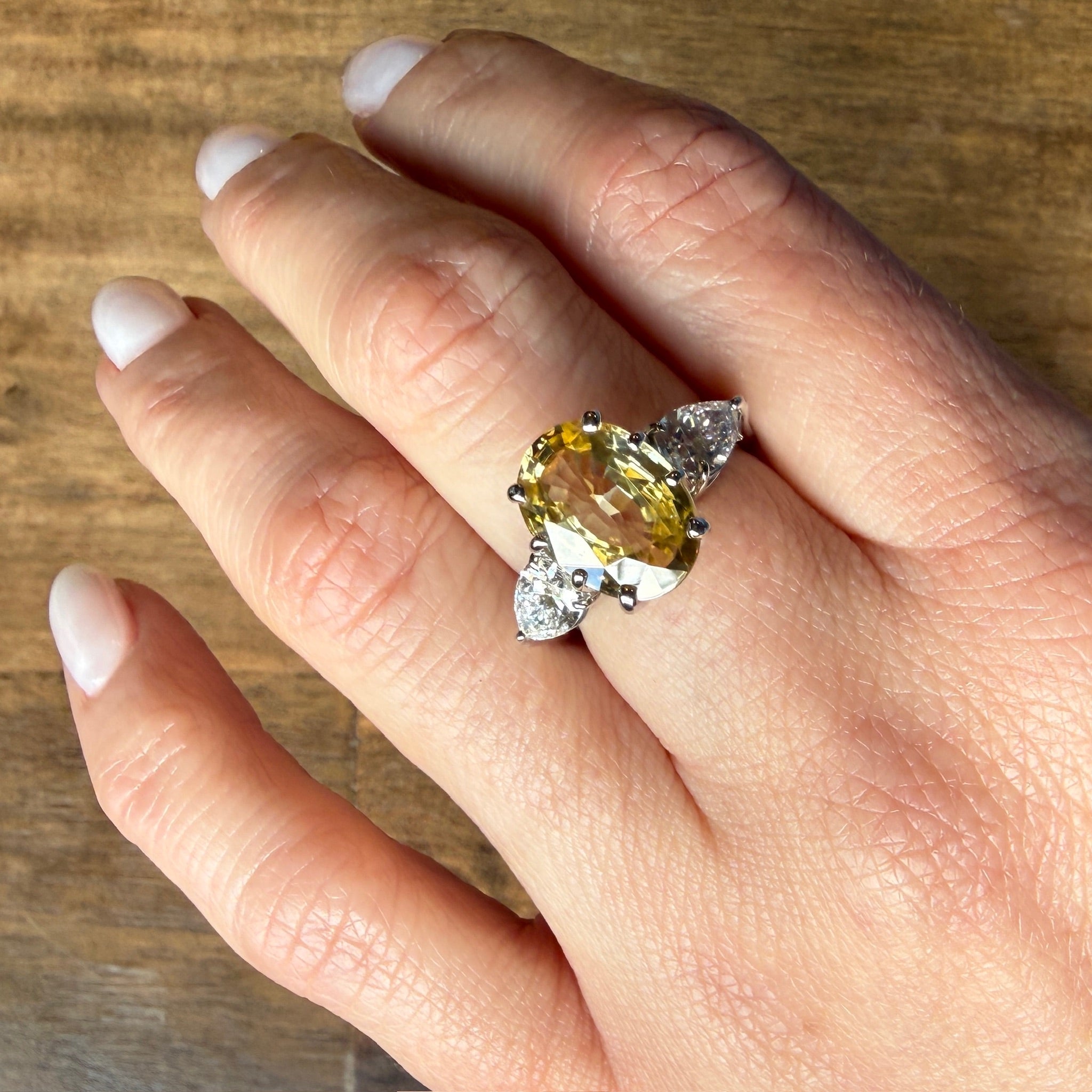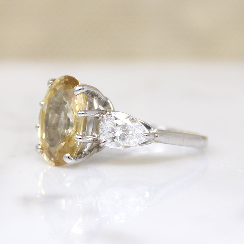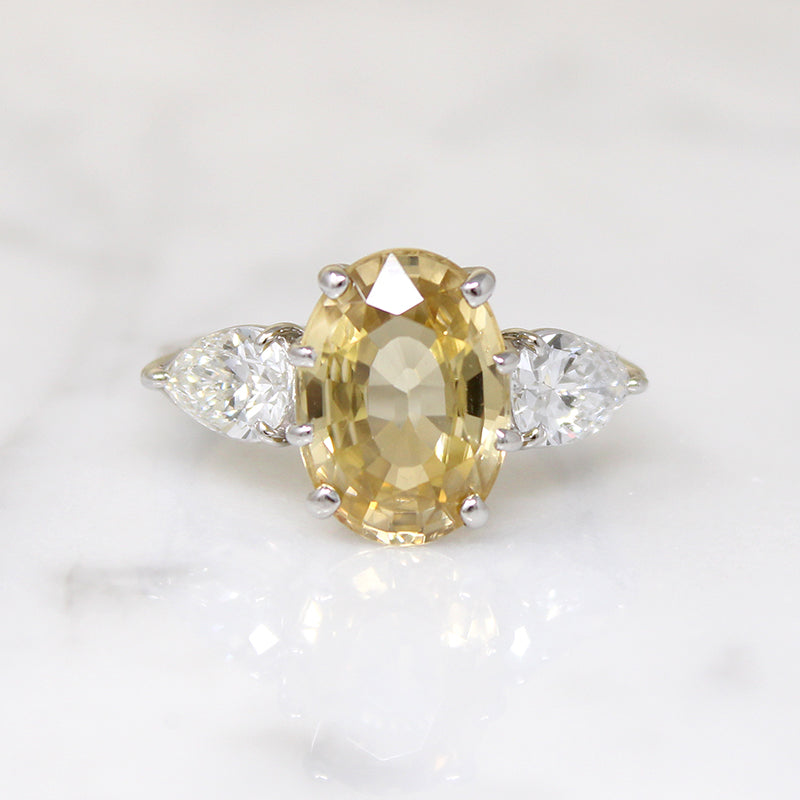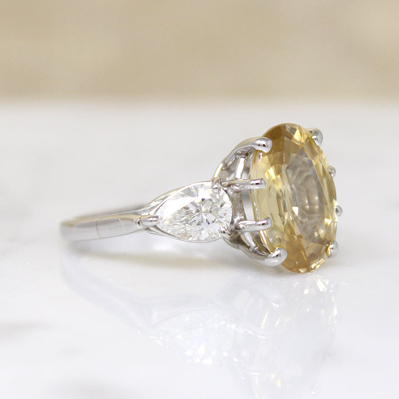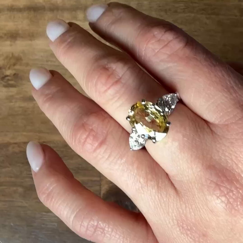 Outrageous Yellow Zircon Ring with Pear Diamond Accents